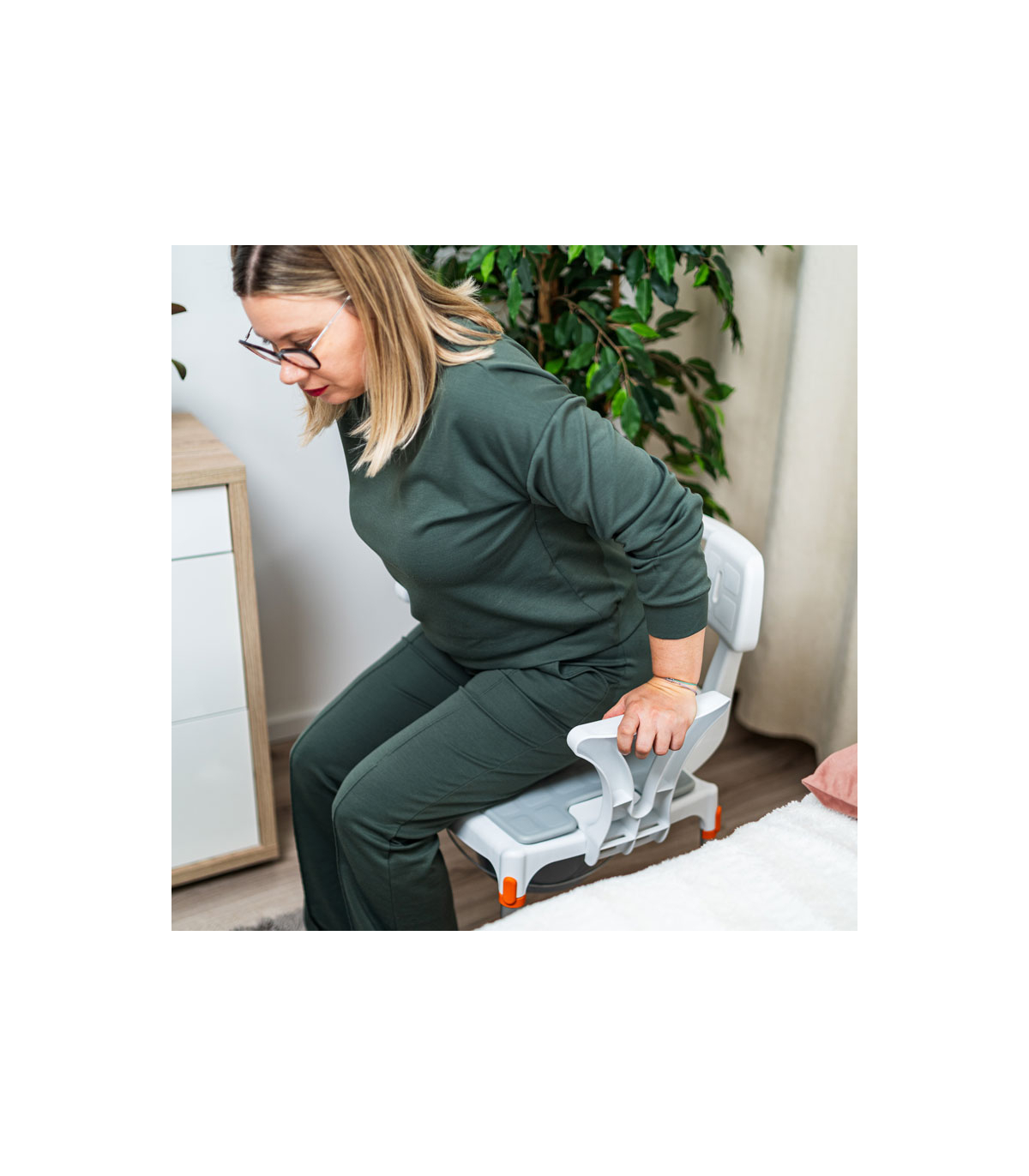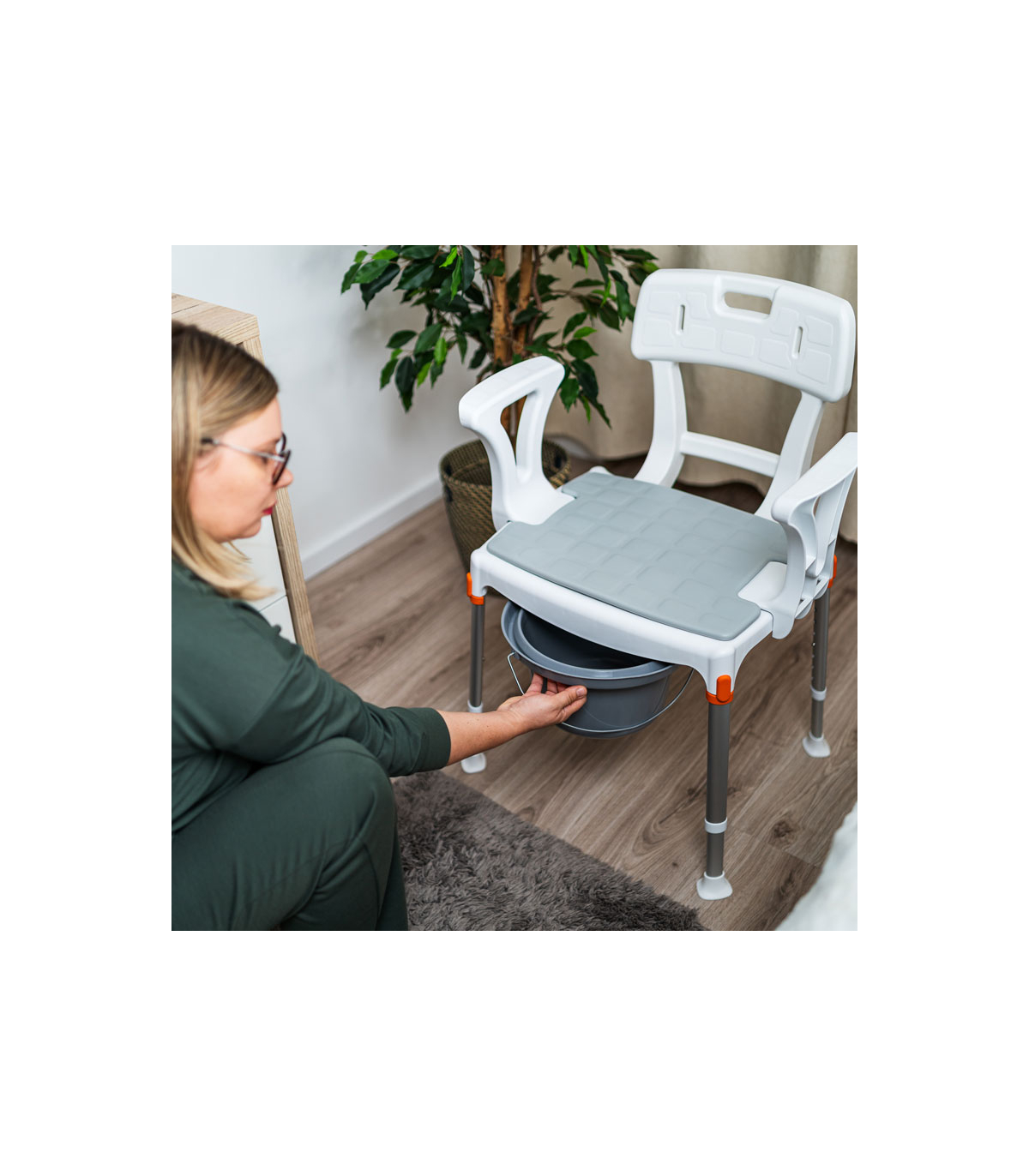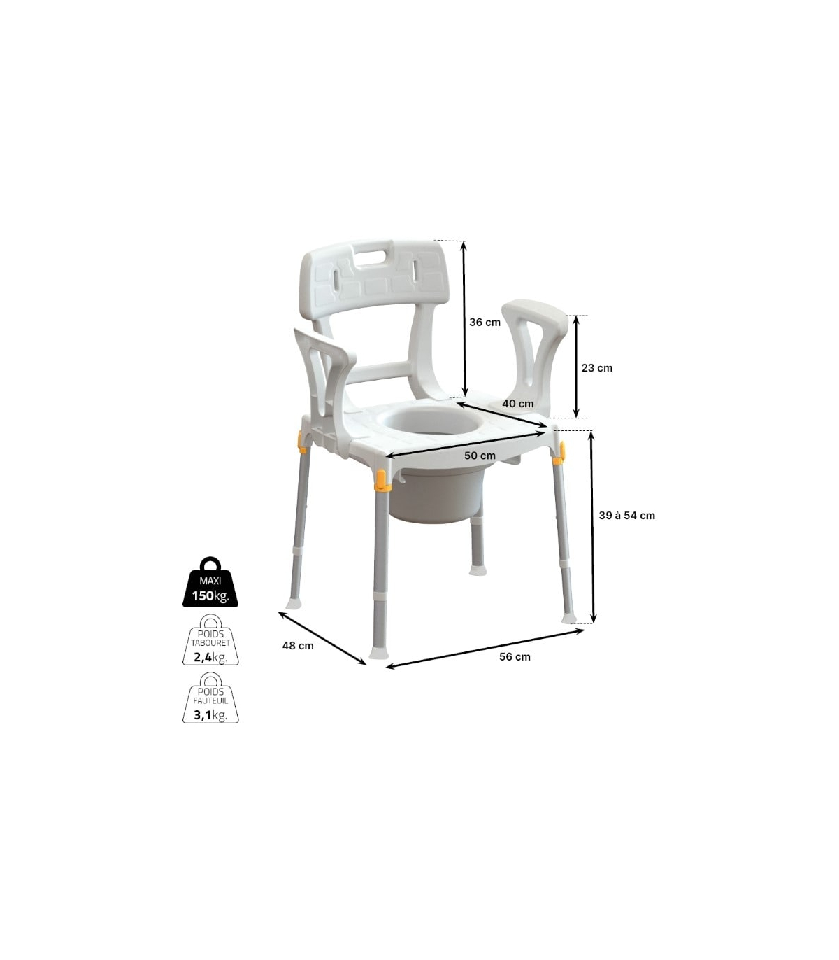 Le modèle fauteuil est équipé d’un dossier amovible de 36 cm de hauteur, apportant un confort supplémentaire pour ceux qui recherchent un bon maintien du dos. Selon vos besoins, il peut être retiré pour une utilisation plus compacte et discrète sous forme de tabouret.