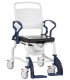 Pour déplacer facilement la personne à mobilité réduite jusqu'à la douche, la chaise garde-robe est munie de 4 roulettes pivotantes à freins.