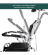 Elle dispose de repose-pieds amovibles réglables ainsi que des accoudoirs relevables avec garde-corps capitonnés pour faciliter les transferts.