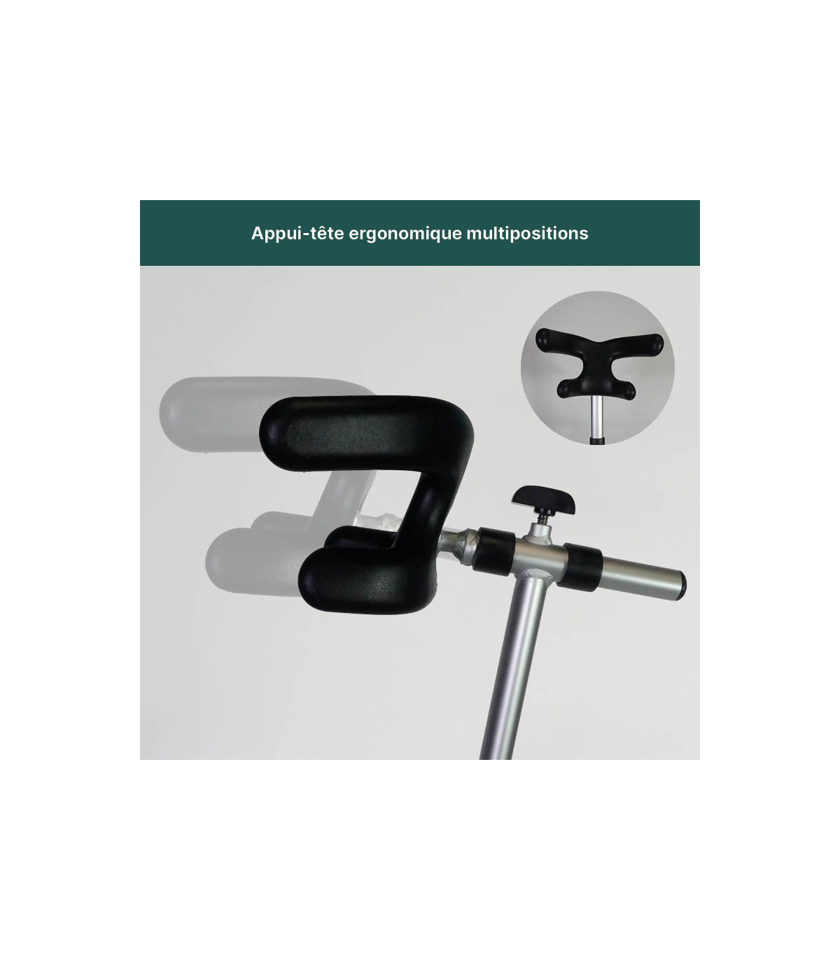 Le fauteuil de douche Formentera à roulettes est muni d'un appui-tête ergonomique multi-positions pour un maximum de confort.