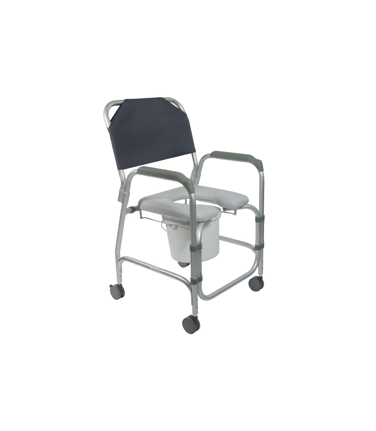 En outre, la chaise percée à roulettes Mahina de chez Drive Devilbiss est muni de deux roues arrière à freins pour plus de sécurité.