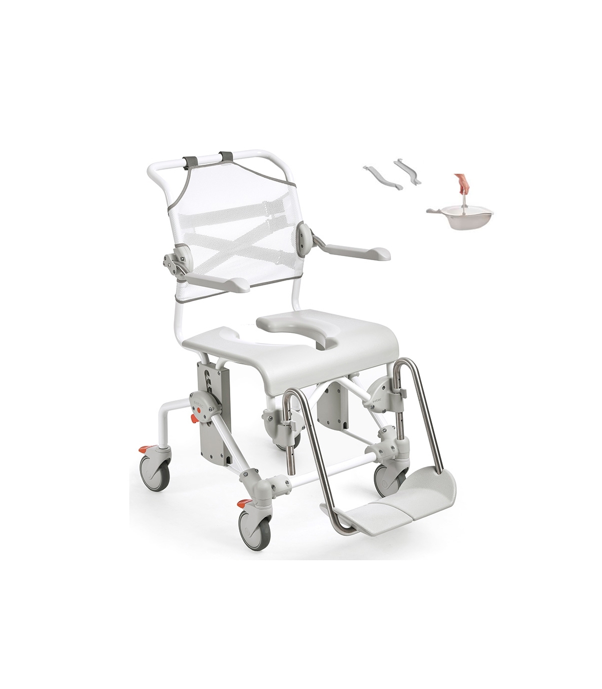 La chaise flexible Etac Swift Mobil 2 permet de faciliter les transferts du patient de la chambre vers la salle de bain.