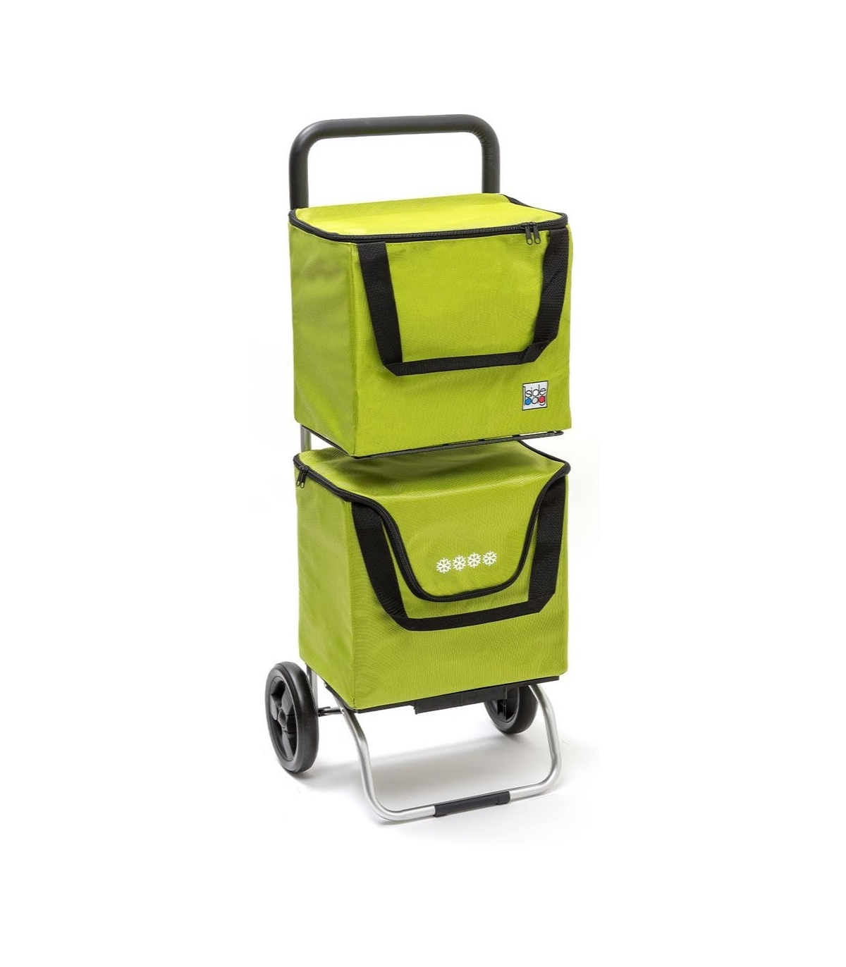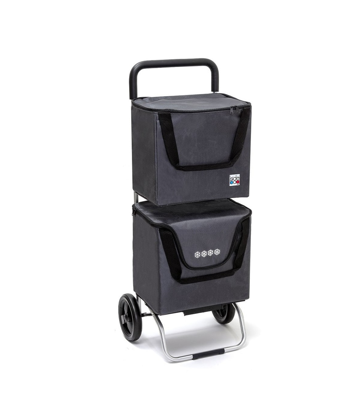 Cette poussette de marché shopping est équipée de 2 sacs indépendants (contenance 35 L) placés à 2 hauteurs différentes pour gérer le rangement de vos courses plus facilement. Nous vous proposons d'équiper votre chariot de course avec 2 sacs non-isothermes, un sac isotherme ou 2 sacs isothermes. Ainsi, vous pourrez garder vos aliments au frais jusqu'à chez vous.