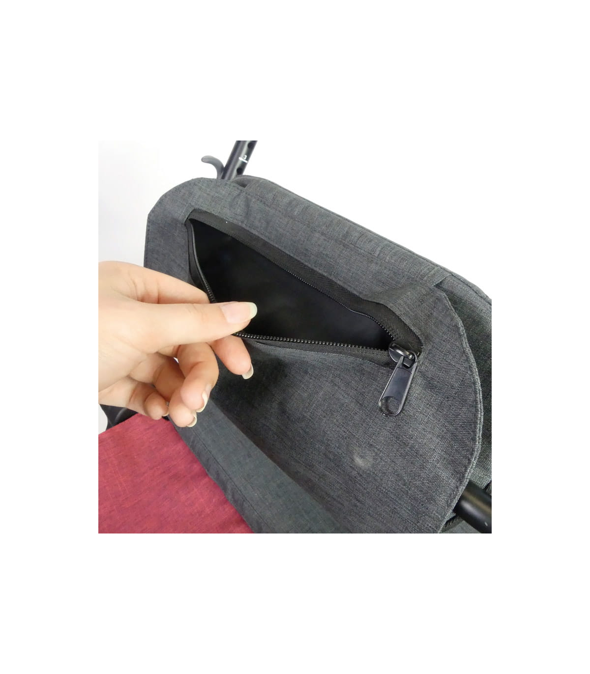 Le chariot de course 4 roues Rest N'Roll proposé à un prix attractif est équipé d'une pochette de sécurité, discrètement placée derrière l’assise, permettant de conserver vos objets personnels à portée de main en toute tranquillité.