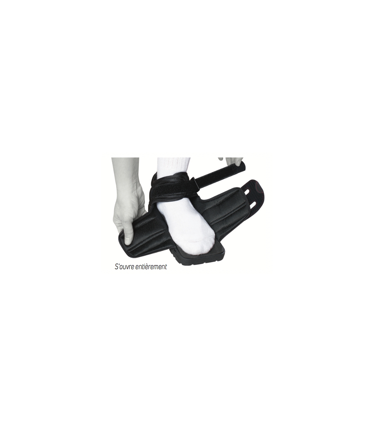 Celle-ci dispose également de sangles au niveau de la cheville afin de maintenir le pied du patient dans une bonne position.