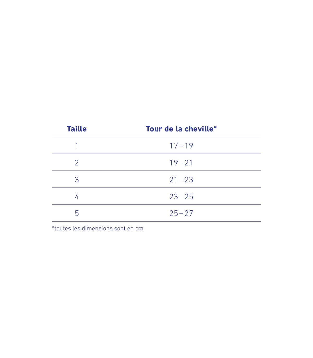 Taille grand. J’ai commandé la taille selon le guide des tailles, mais je n’arrive pas à l’ajuster correctement. La bande à enrouler en 8 n’étant pas élastique, l’ajustement n’est pas correct pour un bon maintien de la cheville.