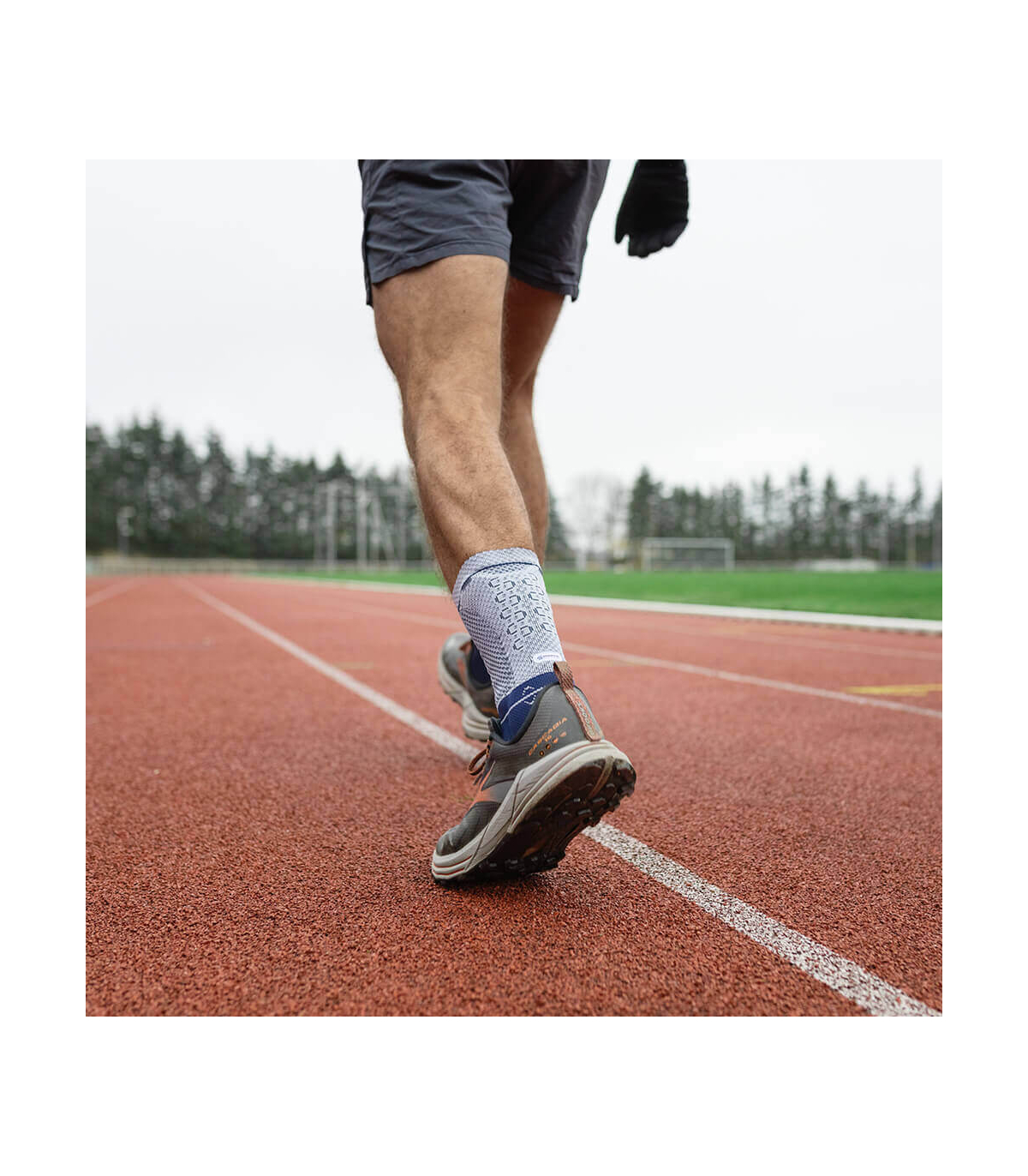 La chevillère de contention Achillotrain bilatérale de la marque Bauerfeind est munie de 2 coussinets situés des deux côtés du tendon d'Achille. Ces coussinets vont procurer un massage doux en utilisant différentes variations de pression.