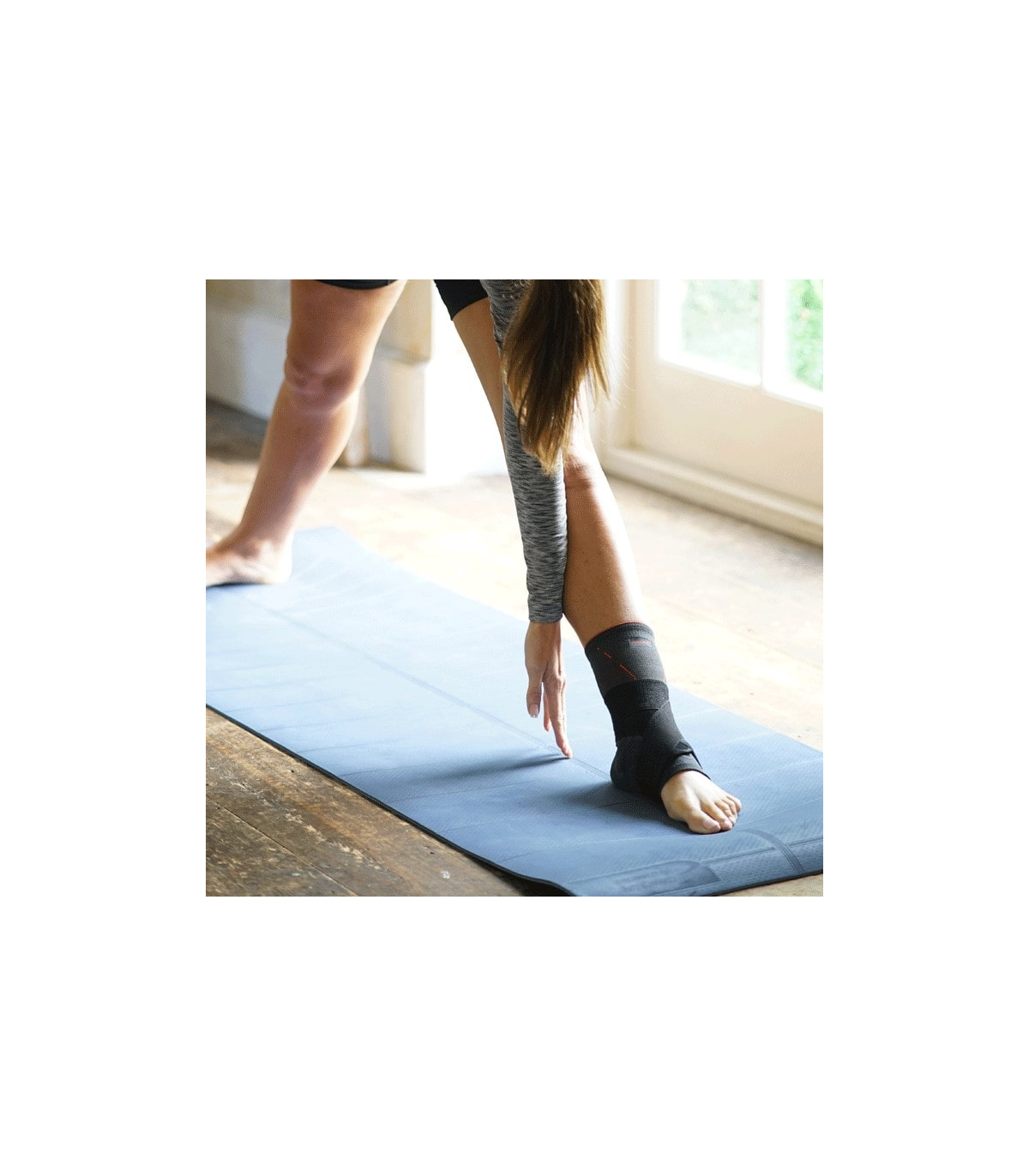 - Préparation: Asseyez-vous confortablement pour enfiler la chevillère. Assurez-vous que votre peau est propre, sèche et exempte de blessures ou de résidus de crèmes.