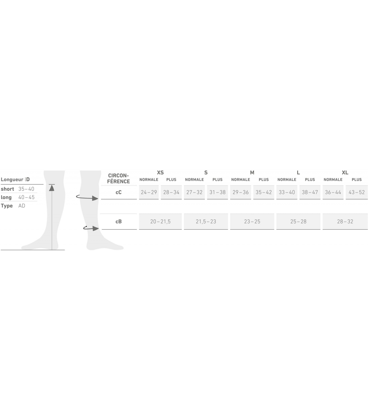 • Classe de compression: 34 - 39 mmHg