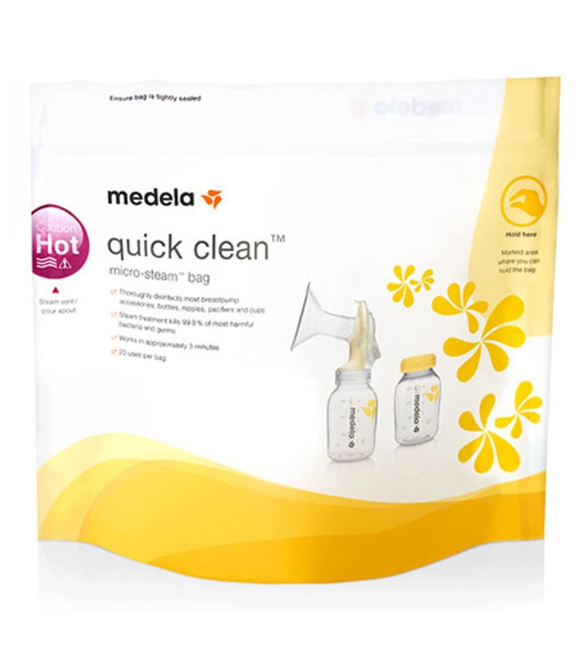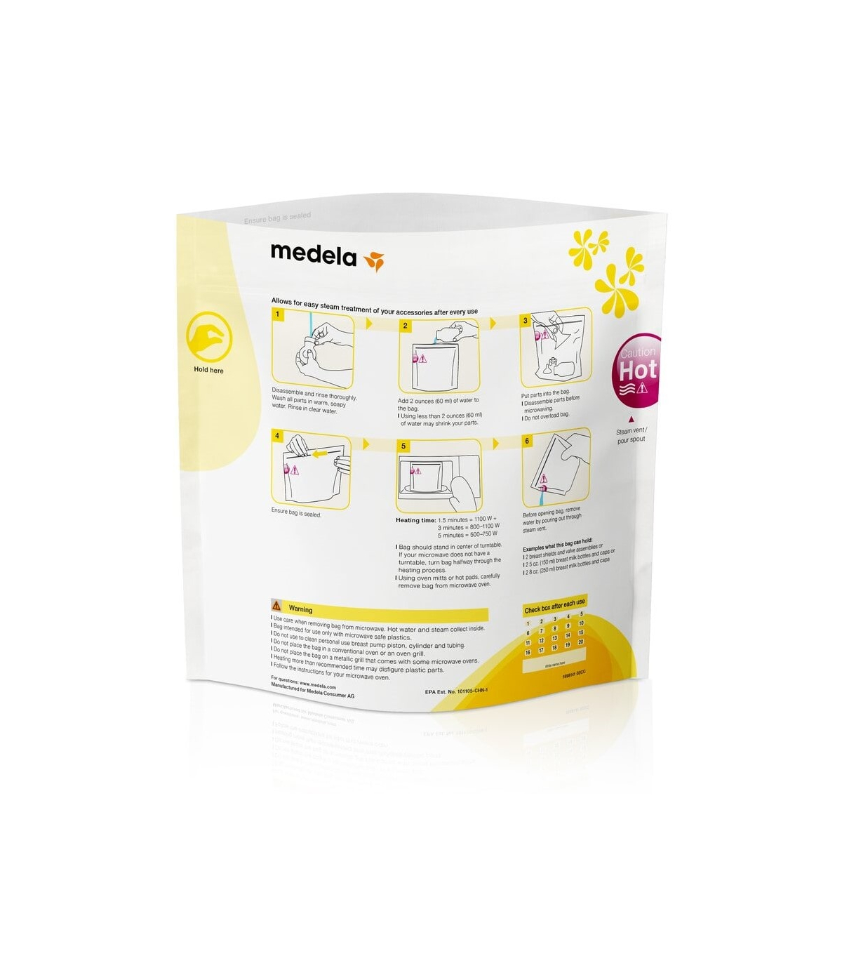 - Les sachets pour micro-ondes Medela utilisent la vapeur pour éliminer rapidement et facilement les microbes, les bactéries courantes et la levure.