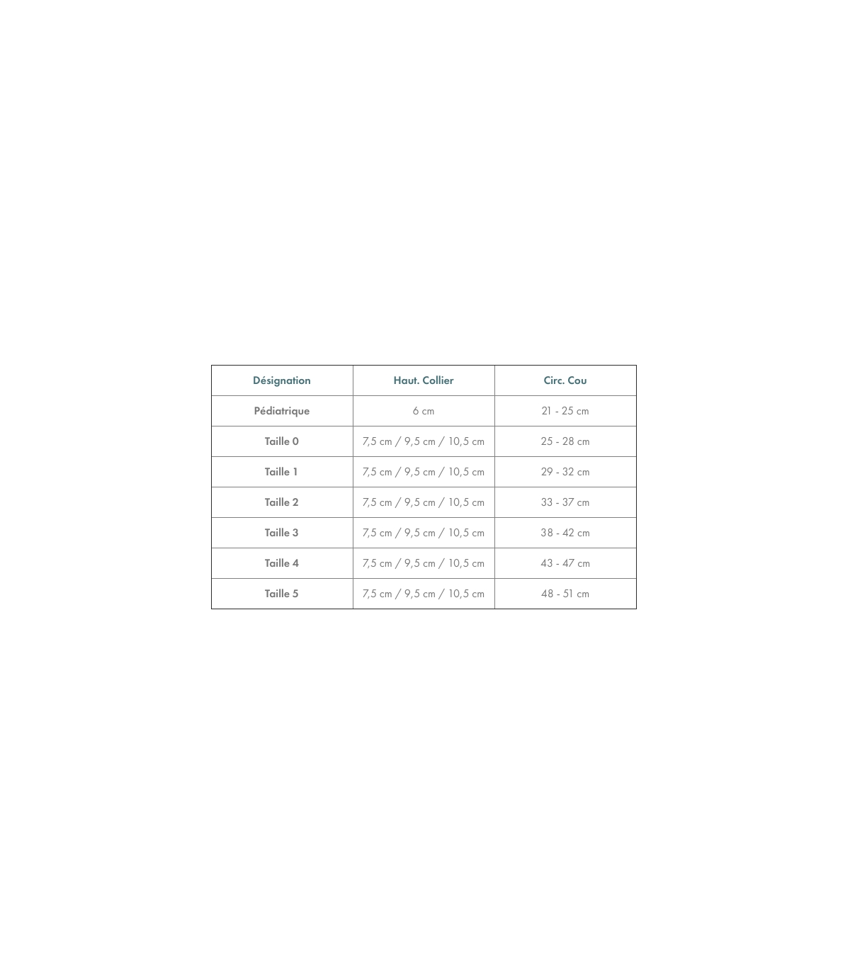 De plus, le collier cervical C2 est disponible en 4 hauteurs et en 7 tailles (de pédiatrique à T5) pour une adaptation parfaite à l'utilisateur.