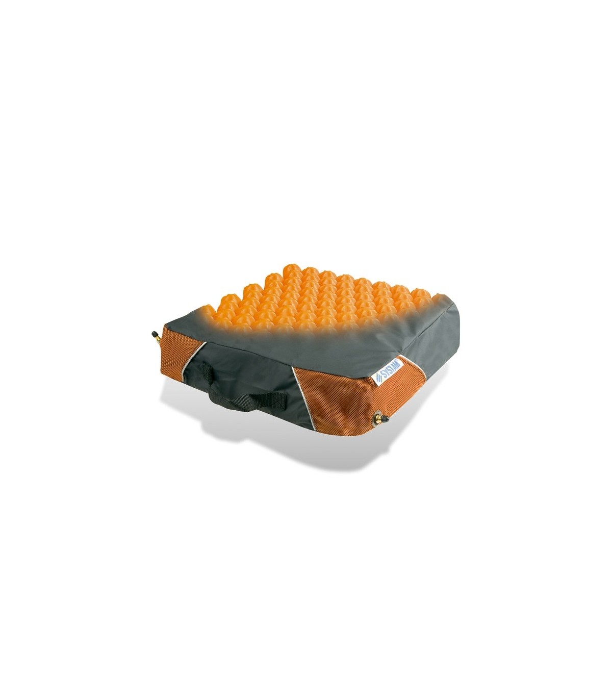 • L'air du coussin anti-escarres se répartit entre les cellules grâce au système de canaux intérieurs de ventilation, permettant ainsi une adaptation à toutes les morphologies et une réduction significative des pressions transcutanées.