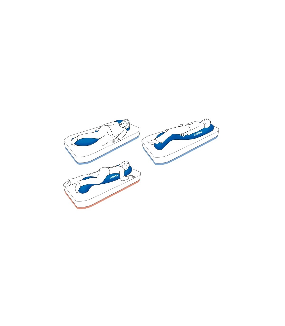 Le coussin est doté d'un oreiller intégré et assure au patient un confort de positionnement des genoux, du bassin et du tronc en décubitus semi-latéral 30°.
