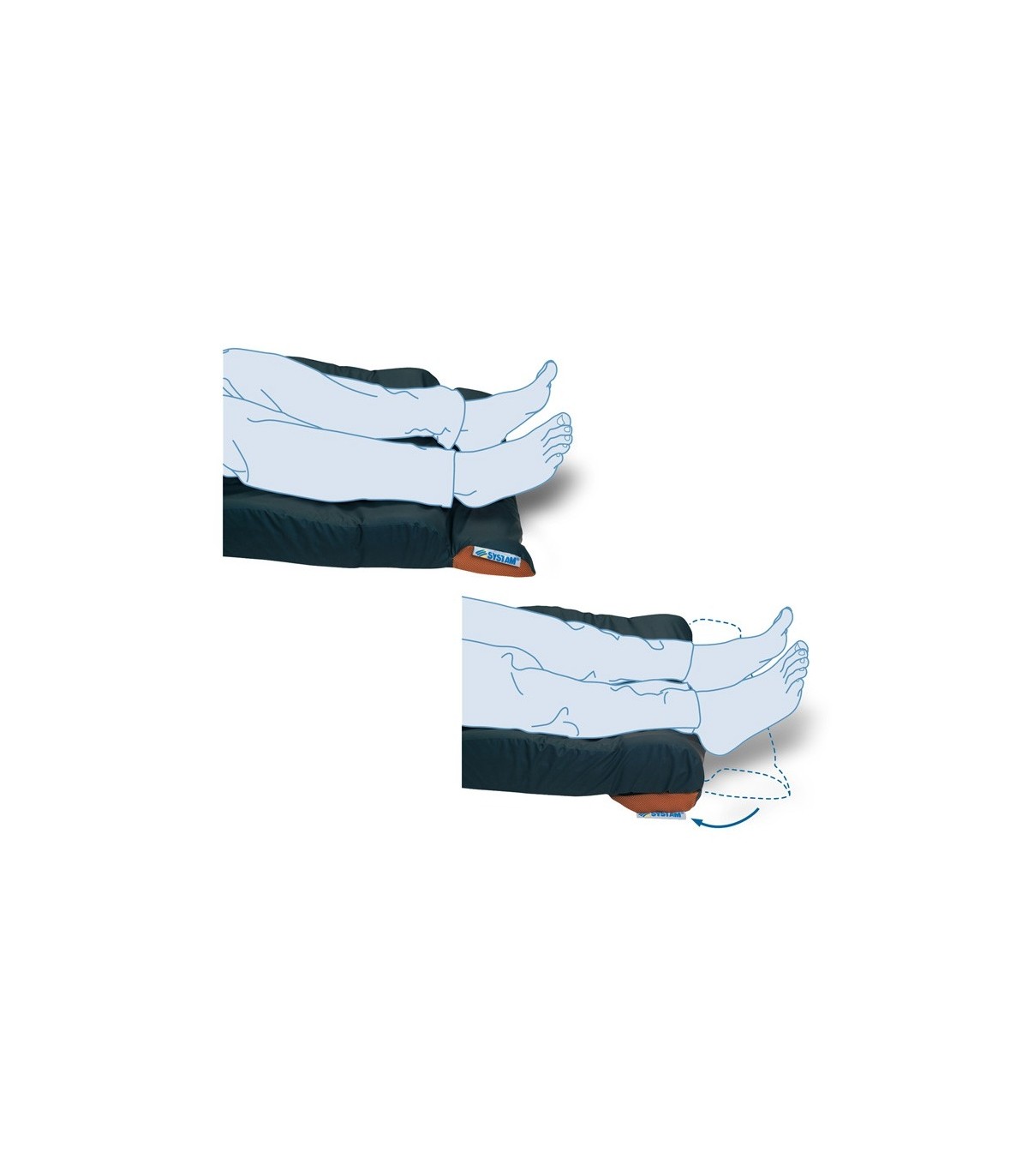 La mousse à mémoire de forme permet l'enfoncement du talon au sein de la matière, ce qui combiné au galbe du dispositif, procure un abaissement des pics de pressions en regard des zones à risque d'escarres.
