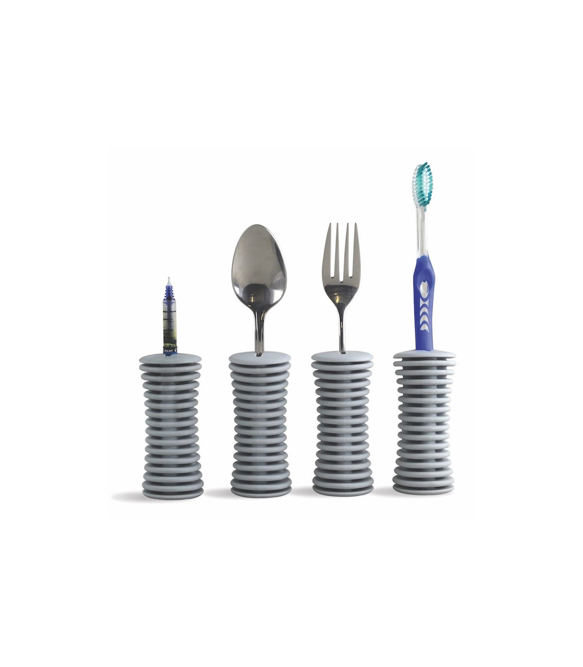 Celui-ci est vendu par lot de 2 manchons avec des ouvertures différentes à chaque extrémité pour s'adapter à beaucoup de forme de manche: Fourchette, cuillère, crayon, brosse à dents... (diamètre maximum de l'ustensile 2,54 cm).