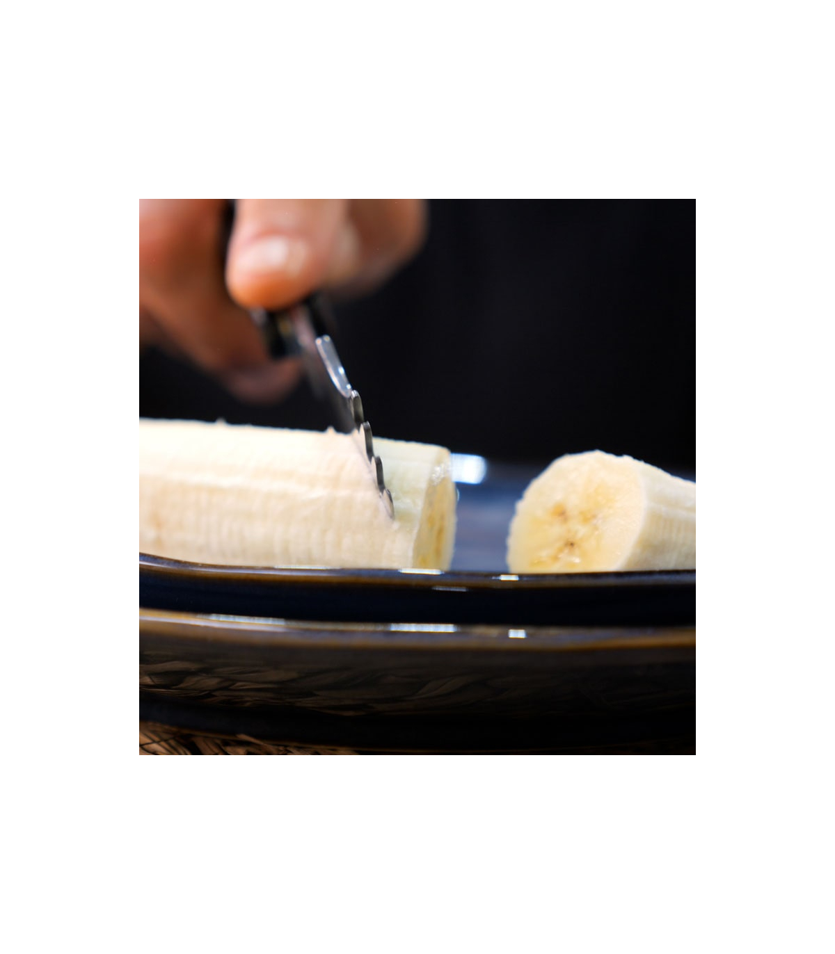 La lame en acier inoxydable comporte une extrémité "fourchette" 4 piques afin d'attraper les aliments facilement.