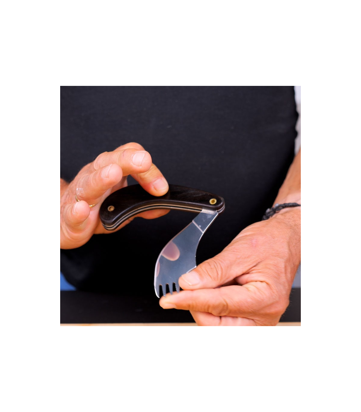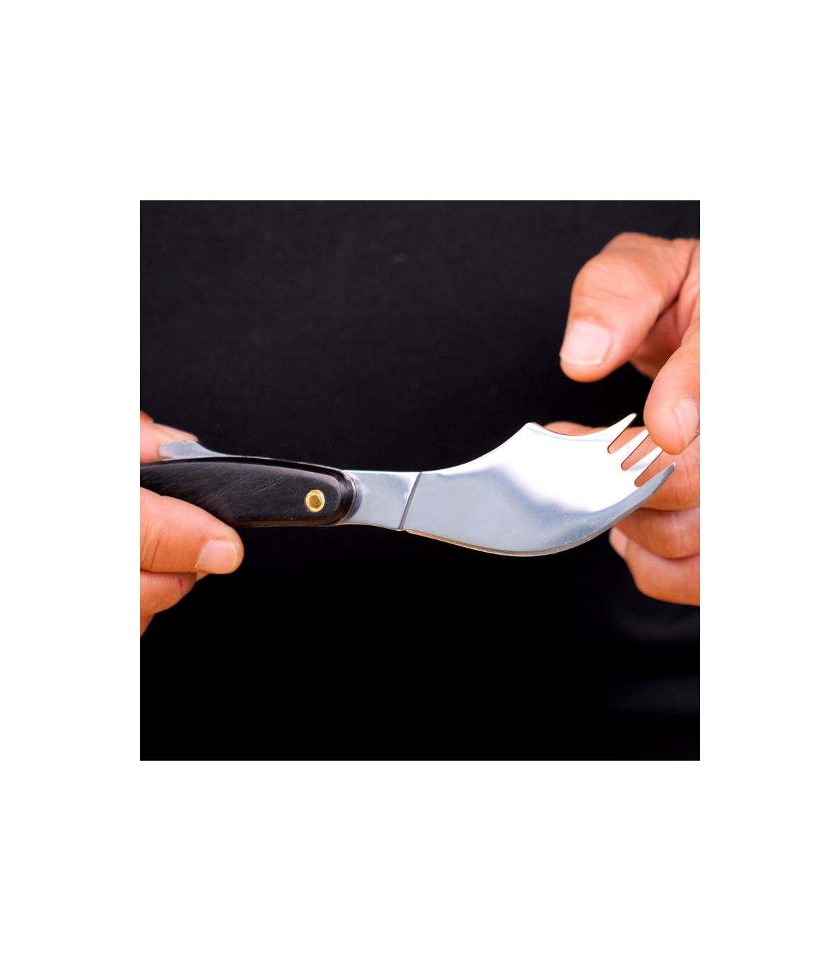 Couteau fourchette pliant ergonomique pour hémiplégique