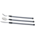 Les parties fonctionnelles (cuillère, fourchette ou couteau) sont fabriquées en acier inoxydable de haute qualité, garantissant une excellente durabilité, une bonne résistance à la corrosion et un usage hygiénique. La longueur totale du couvert ergonomique varie de 42 à 45 cm selon le modèle.