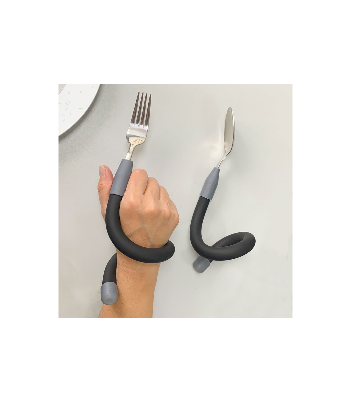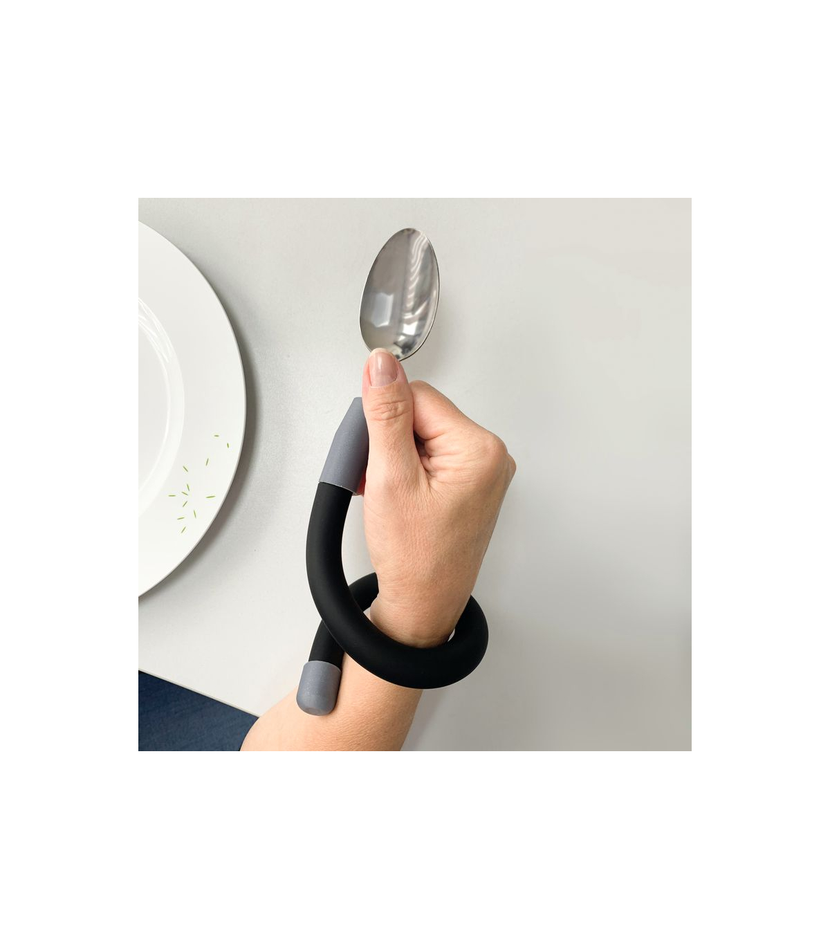 Ce produit est une excellente aide au repas pour les personnes âgées, les personnes en situation de handicap ou celles en phase de rééducation. Son manche souple permet un ajustement parfait en fonction des capacités motrices de l’utilisateur, ce qui en fait un accessoire ergonomique très apprécié en cas de troubles de la marche ou de difficultés à tenir des couverts traditionnels. Particulièrement utile pour les utilisateurs de déambulateur ou ceux qui mangent au lit, ce produit médical favorise l’autonomie à table et améliore le confort au quotidien.