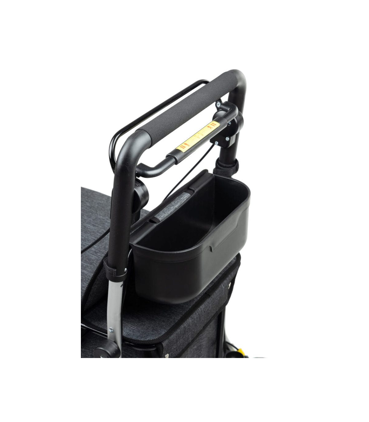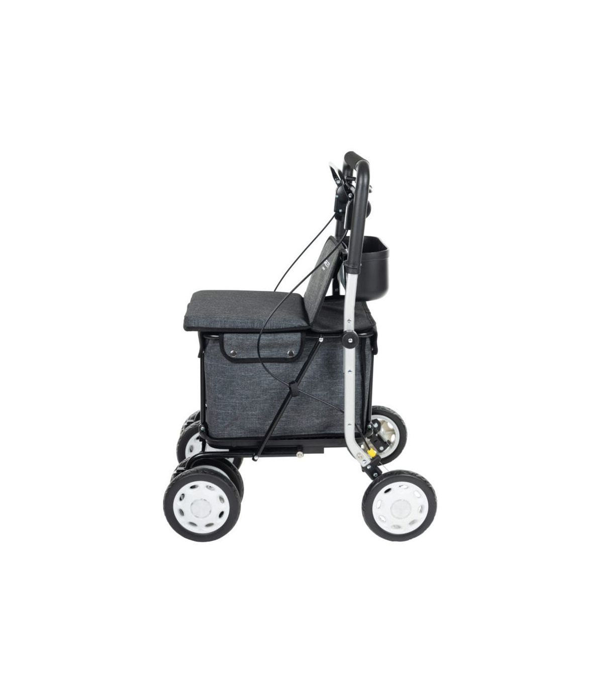 Ce fauteuil 4 roues est équipé d'un sac amovible pouvant contenir jusqu'à 15 kg (36 L) pour transporter vos courses facilement.