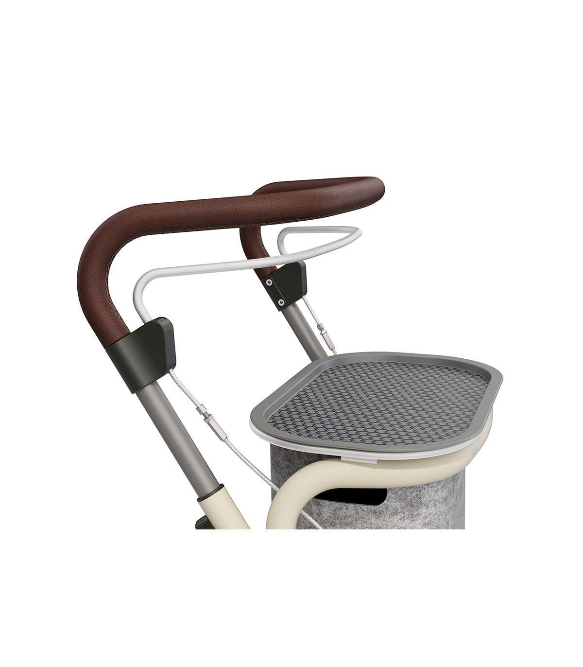 La poignée en simili cuir vous permet de saisir le déambulateur sur toute sa largeur. Celle-ci est positionnée vers l'avant pour assurer un bon positionnement pendant la marche. De plus, la poignée vers l'avant vous permet de vous approcher facilement de votre table de travail pour cuisiner dans les meilleures conditions.