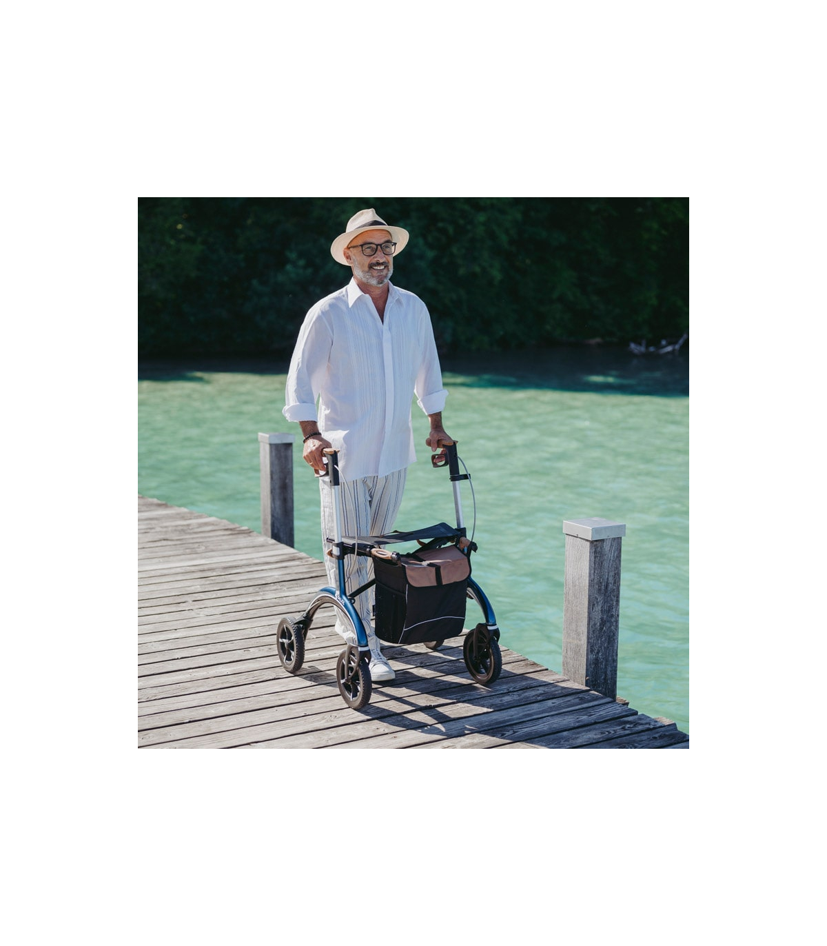 La particularité de ce rollator de marche 4 roues est sa résistance aux chocs, à la chaleur, aux UV et à l'abrasion. Même si vous avez les mains mouillées, les poignées restent antidérapantes.