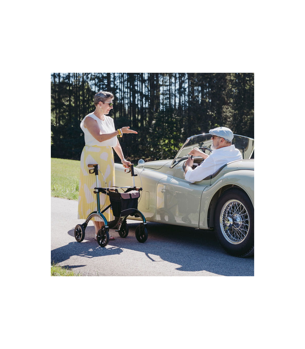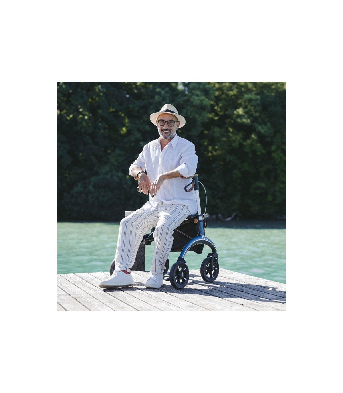 Le déambulateur extérieur 4 roues pliable avec siège Carbone Saljol est conçu pour les personnes à mobilité réduite qui souhaitent retrouver ou maintenir leur autonomie. Cette aide à la marche est idéale pour les promenades en extérieur afin de profiter des beaux jours.