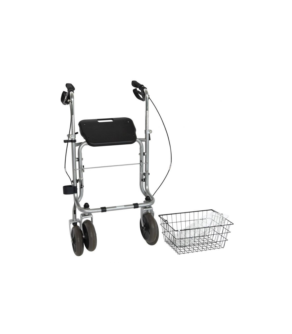 De plus, ce produit médical est livré avec un plateau, un panier et un porte-canne que vous pouvez positionner à droite ou à gauche.