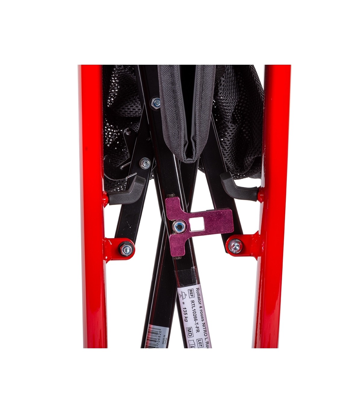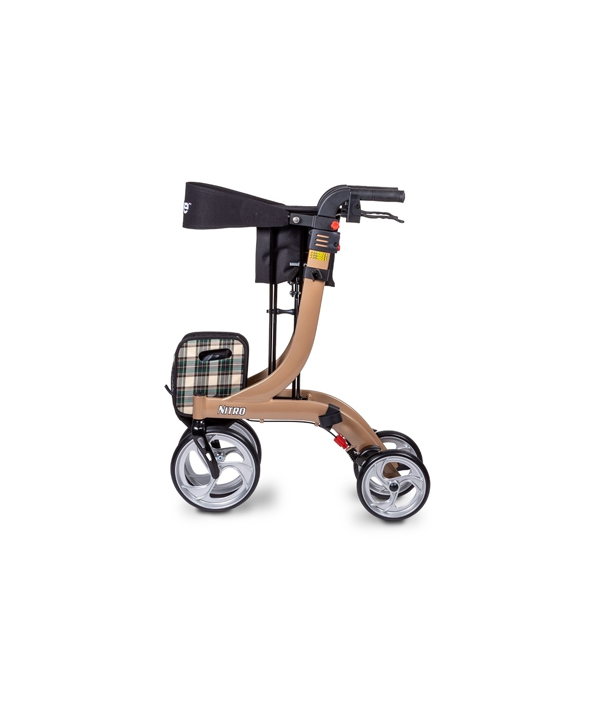 Le rollator Nitro proposé à un prix attractif est équipé de freins parking de série avec système de câbles intégrés dans le cadre pour plus de sécurité.