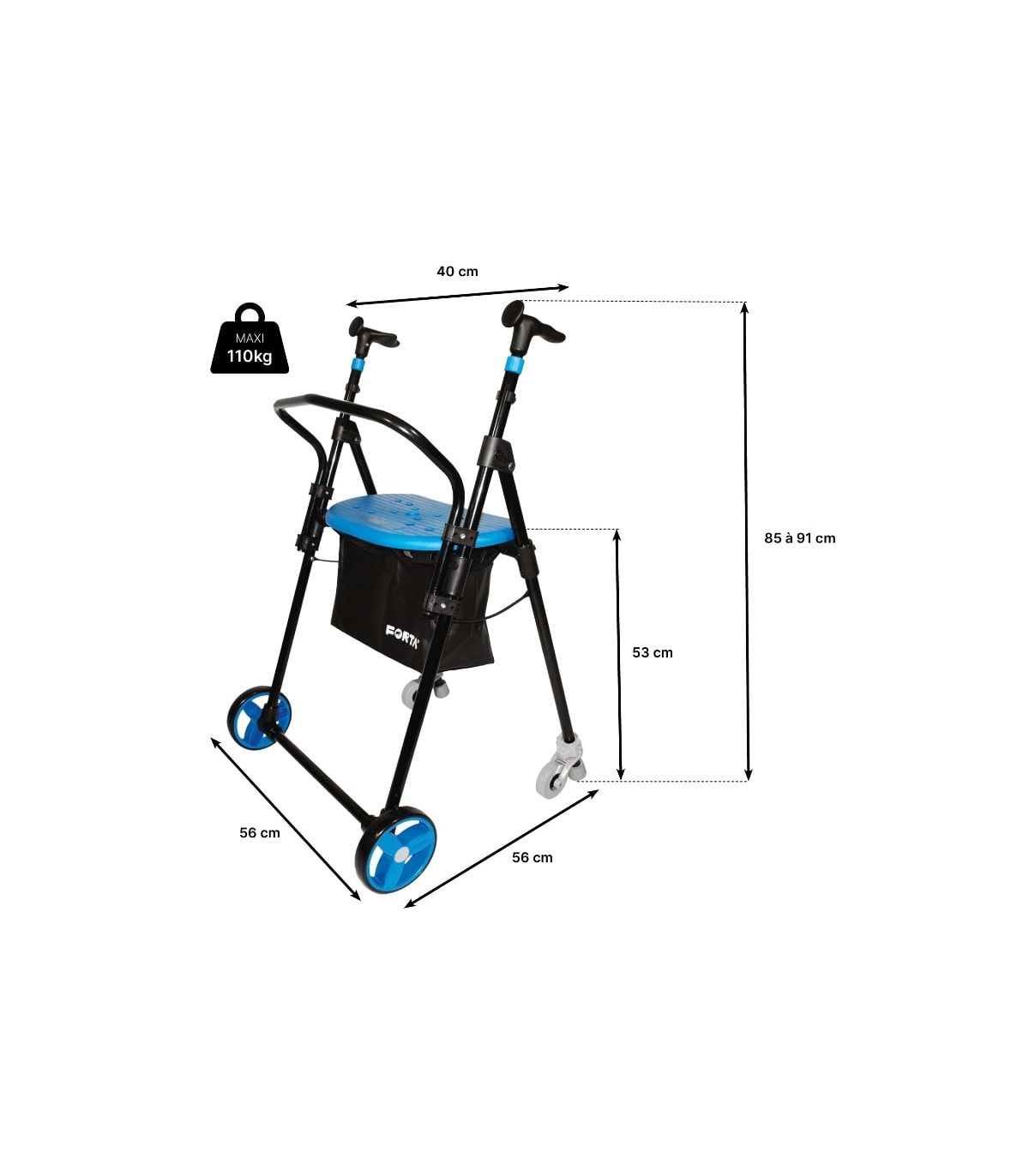 Le déambulateur 2 roues pliable Air On Plus Forta est conçu pour les personnes âgées qui ont des troubles de l'équilibre ou qui chutent souvent. Ce produit médical est une aide à la marche permettant à l'utilisateur de rester autonome.