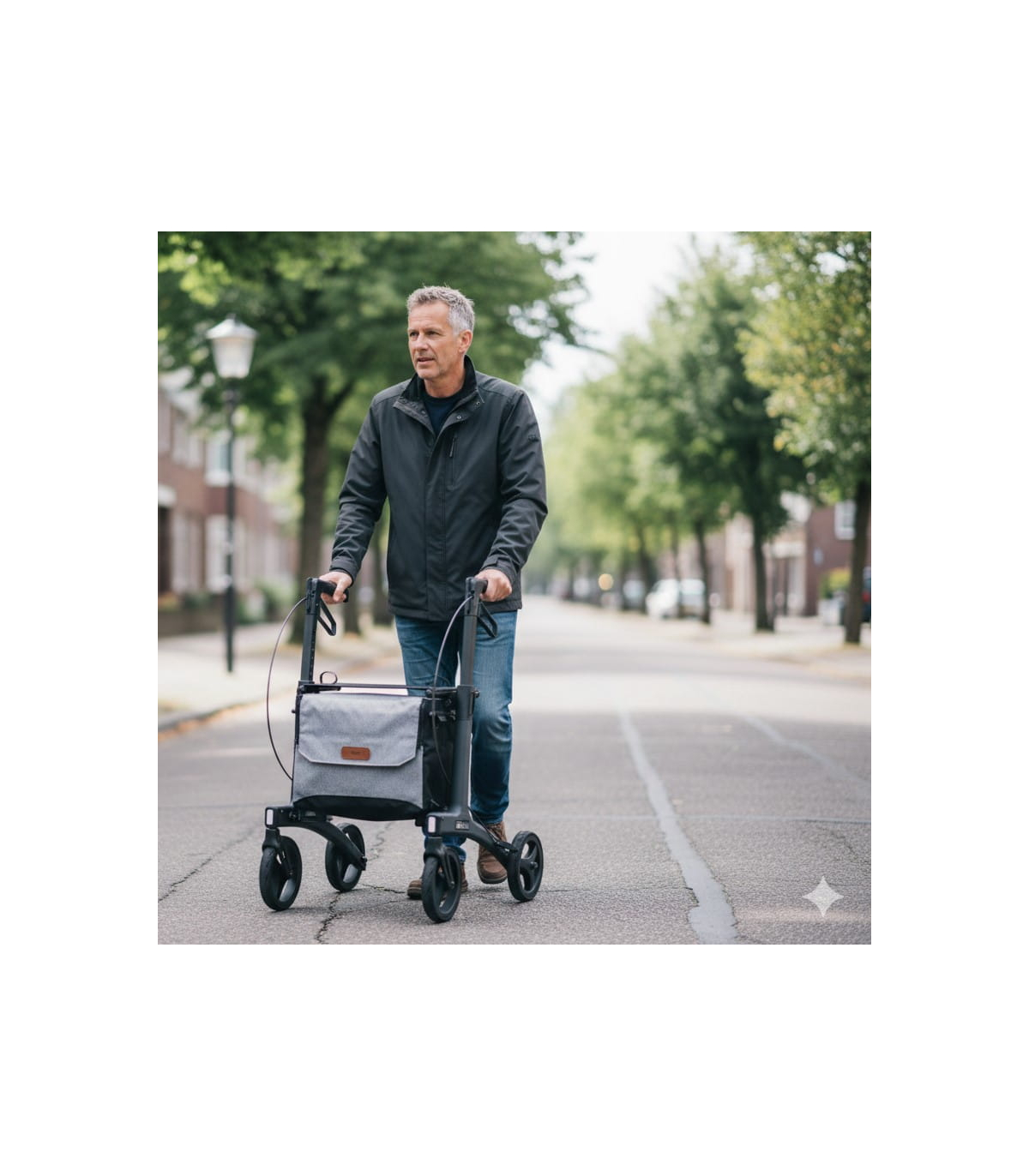 Le déambulateur 4 roues léger et pliable avec pneus souples Rollz Flow est une aide à la mobilité destinée à faciliter les déplacements des personnes qui ont des difficultés à marcher ou à garder l’équilibre. Il est conçu pour les personnes âgées, celles avec une mobilité réduite ou tout simplement celles qui ont besoin d’un soutien stable et confortable pour marcher. Grâce à ses 4 roues, il permet de marcher avec plus d’autonomie et de stabilité, ce qui réduit le risque de chute par rapport à une canne ou un rollator sans roues.