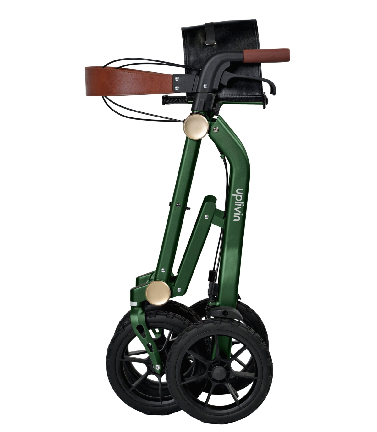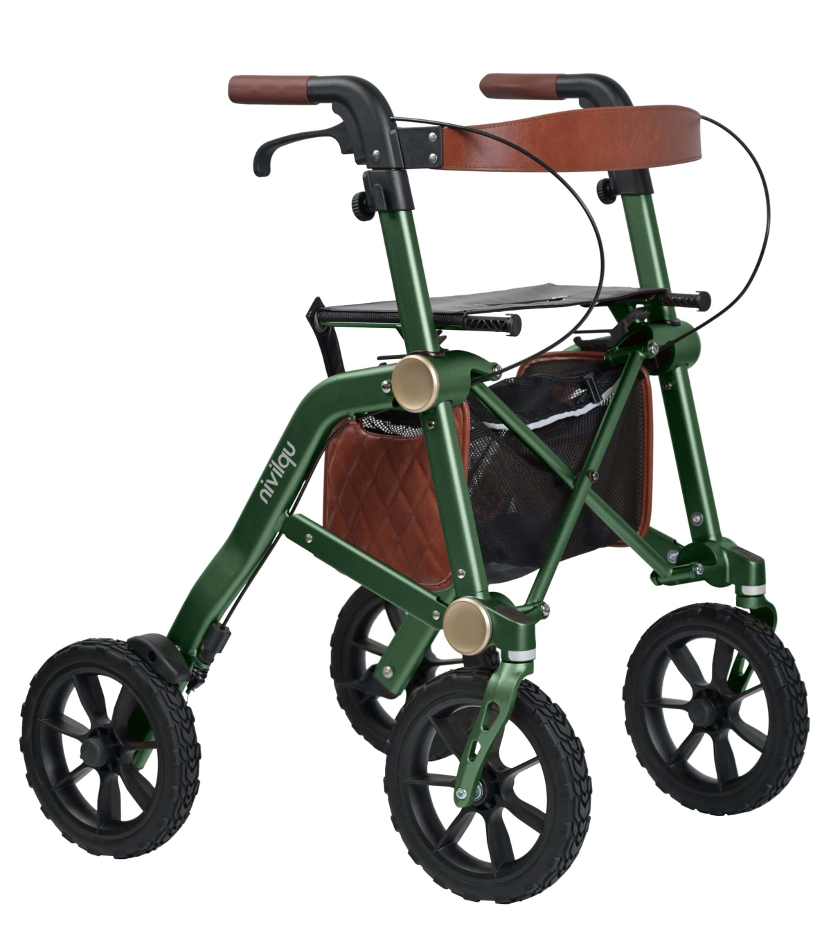 Pratique et esthétique, le sac en cuir fourni avec le rollator pliable Trive All Terrain permet de ranger vos effets personnels en toute sécurité tout en ajoutant une touche d’élégance à votre équipement.