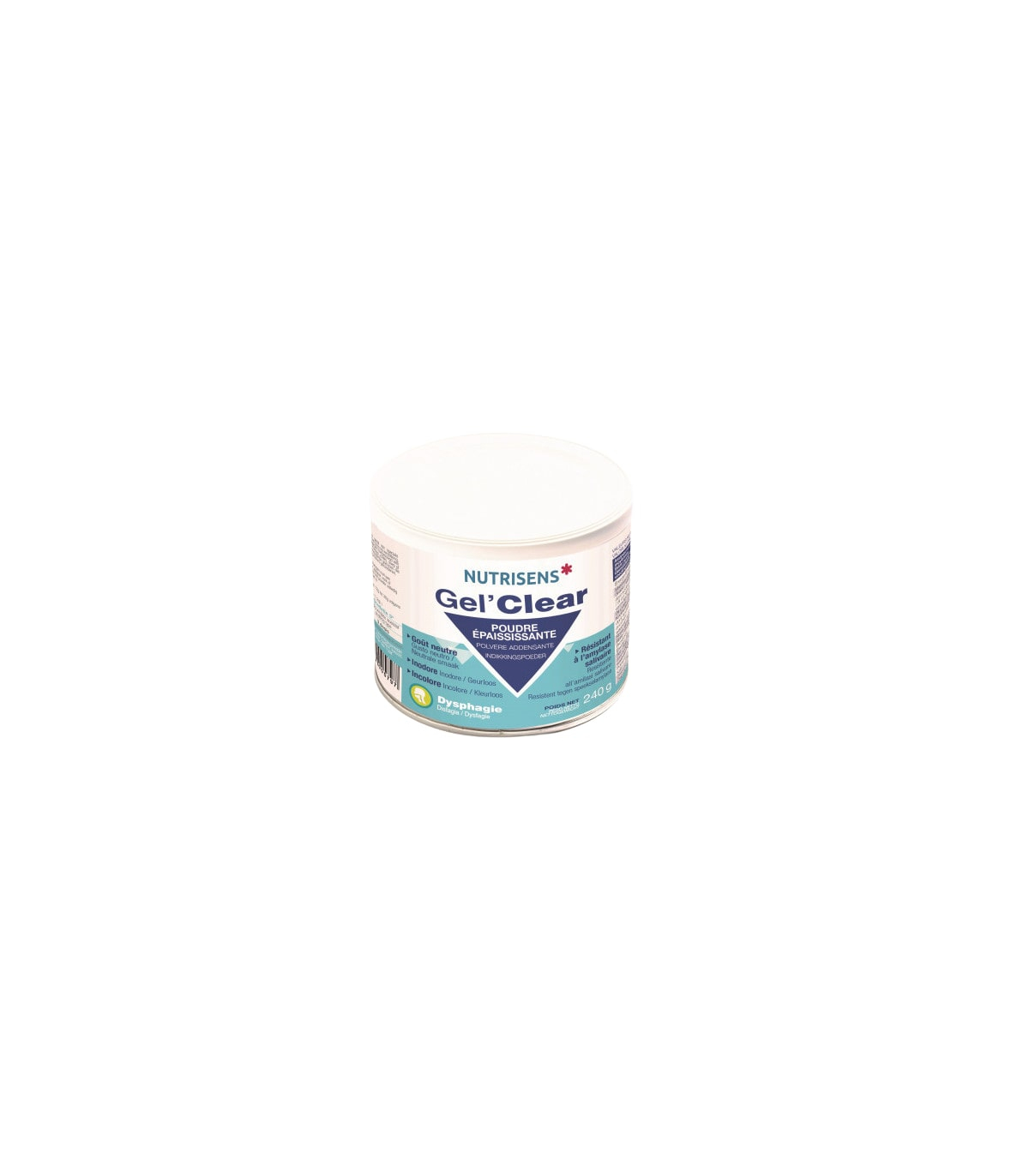 L'eau gélifiée en poudre Gel Clear de la marque Nutrisens est indiquée pour les patients qui n'ont pas la possibilité de boire de l'eau liquide en raison de troubles de la déglutition. Ce produit médical permet d'hydrater efficacement l'utilisateur afin de diminuer le risque de "fausse route".