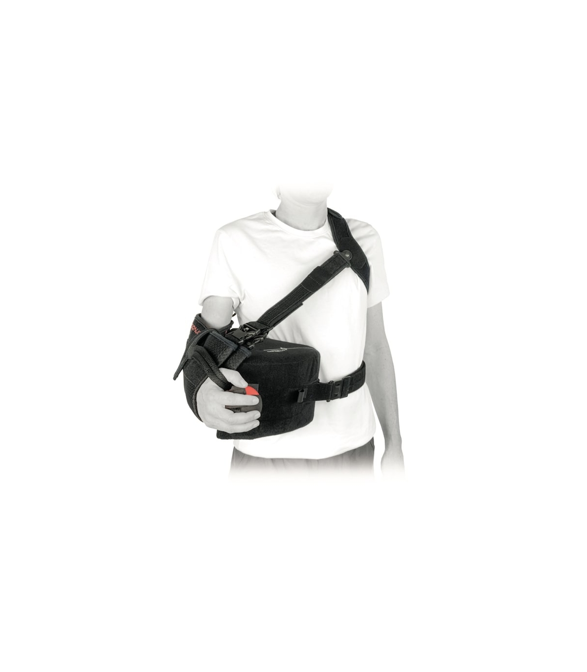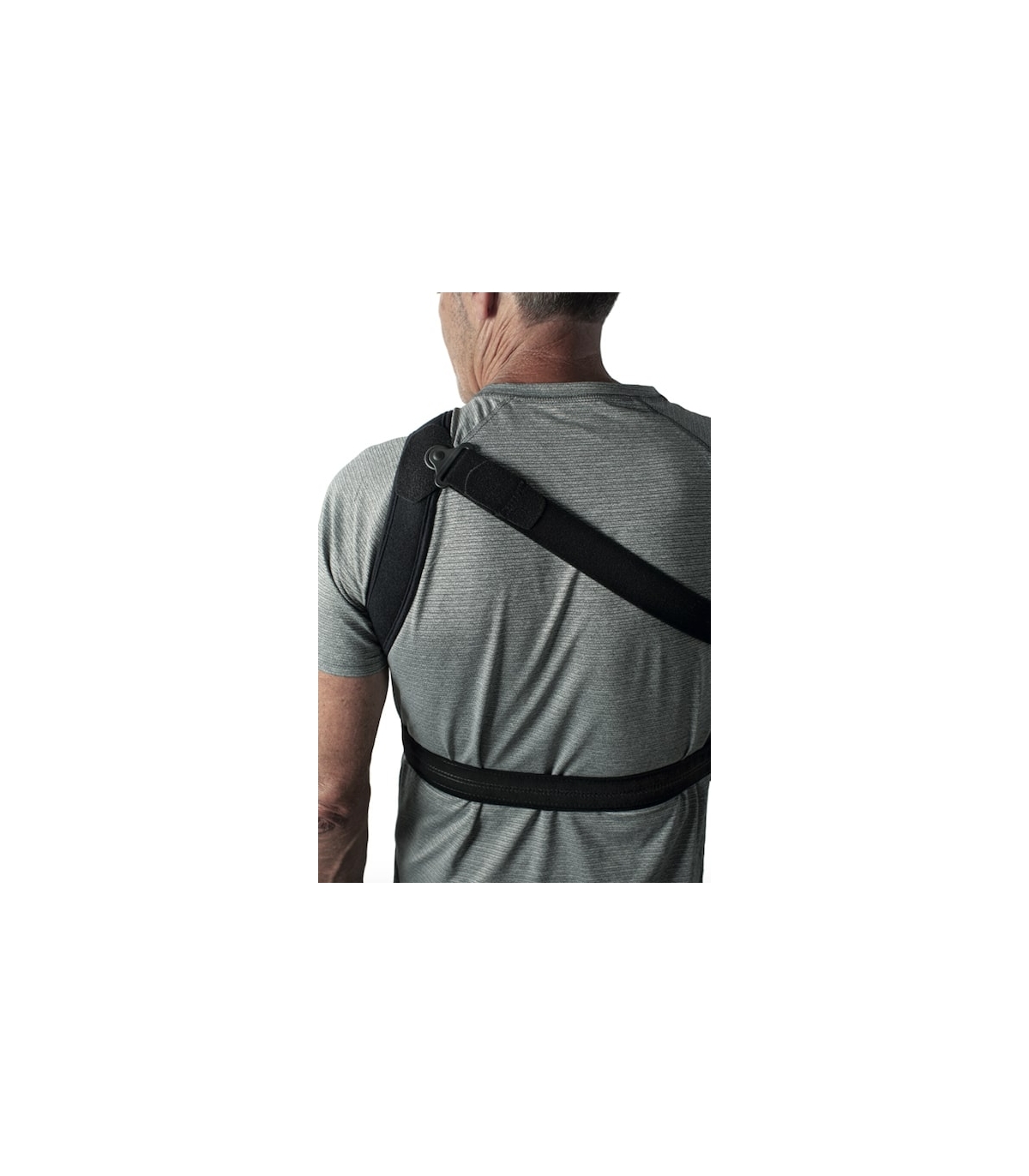 La sangle et l'anneau réglable se positionnent sans difficulté sur l'épaule non blessée du patient ayant pour but de répartir de manière équivalente le poids et de soulager la pression sur le cou.