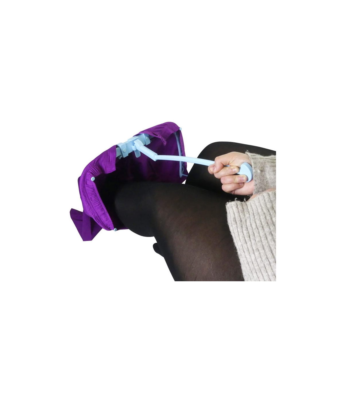 L'aide technique enfile pantalon et enfile sous vêtements est conçue pour faciliter l'habillage des personnes ayant du mal à atteindre leurs pieds. En effet, ce dispositif permet au patient d'enfiler facilement ses sous-vêtements et son pantalon.