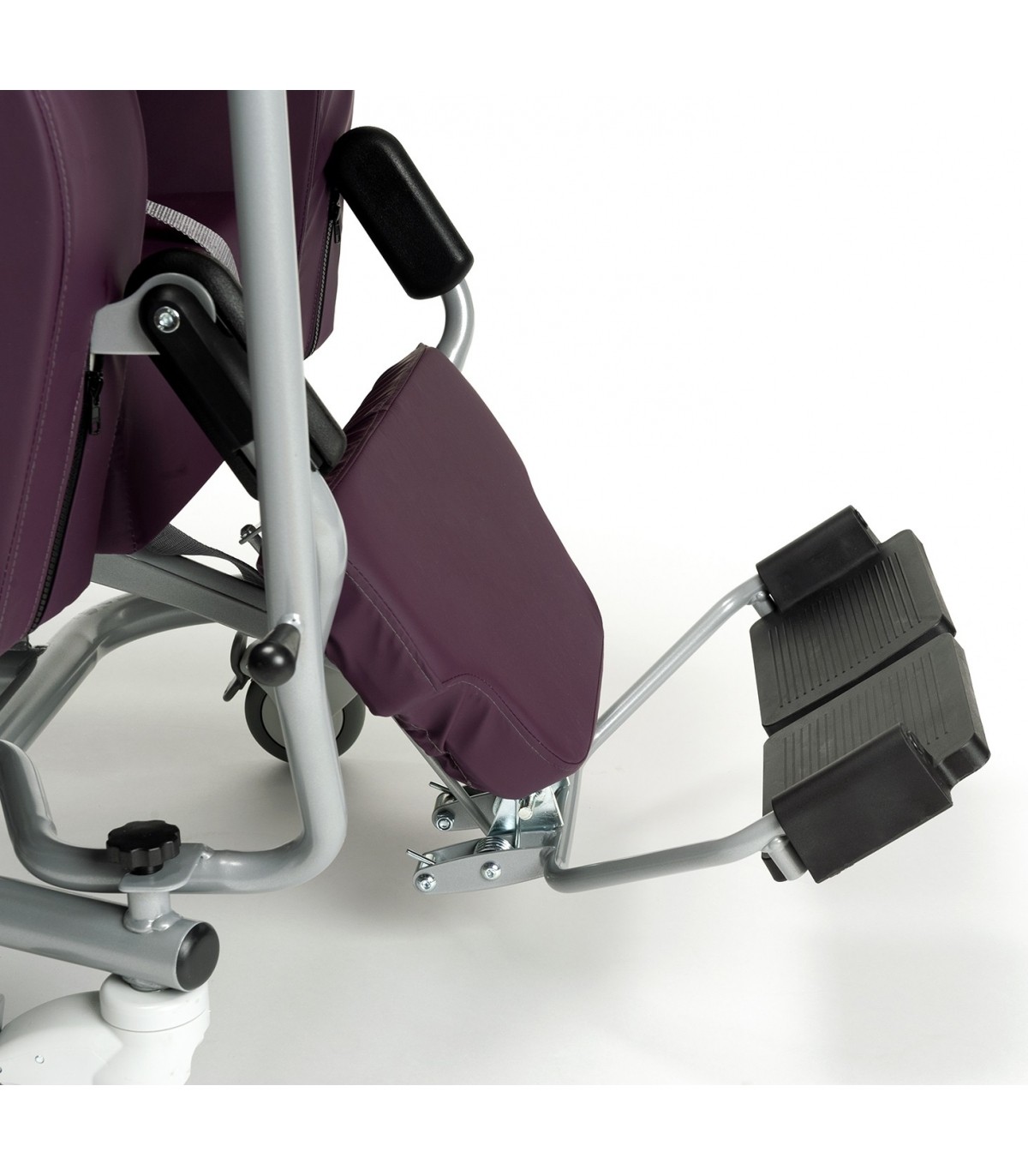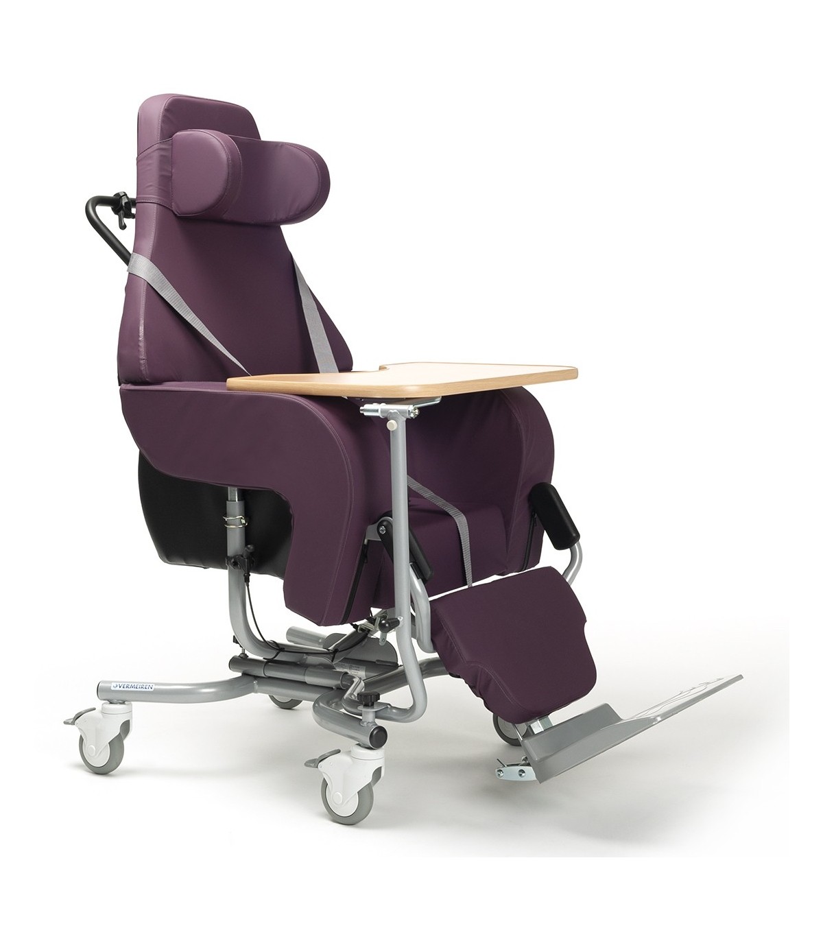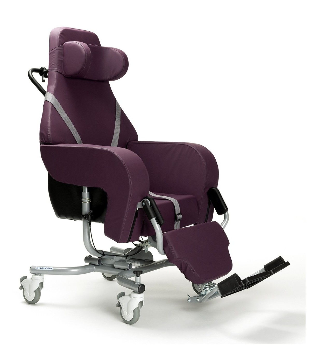 Le fauteuil d'intérieur Altitude est livré avec plusieurs accessoires dont un harnais 4 points, un repose-jambes réglables en inclinaison par vérin et d'un appui-tête rembourré pour un meilleur maintien de l'utilisateur.