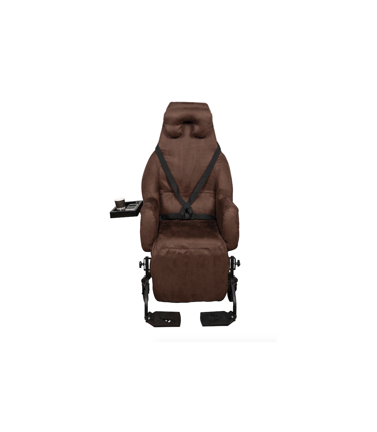 Il est également livré avec un oreiller cervical, un harnais 4 points et une tablette.