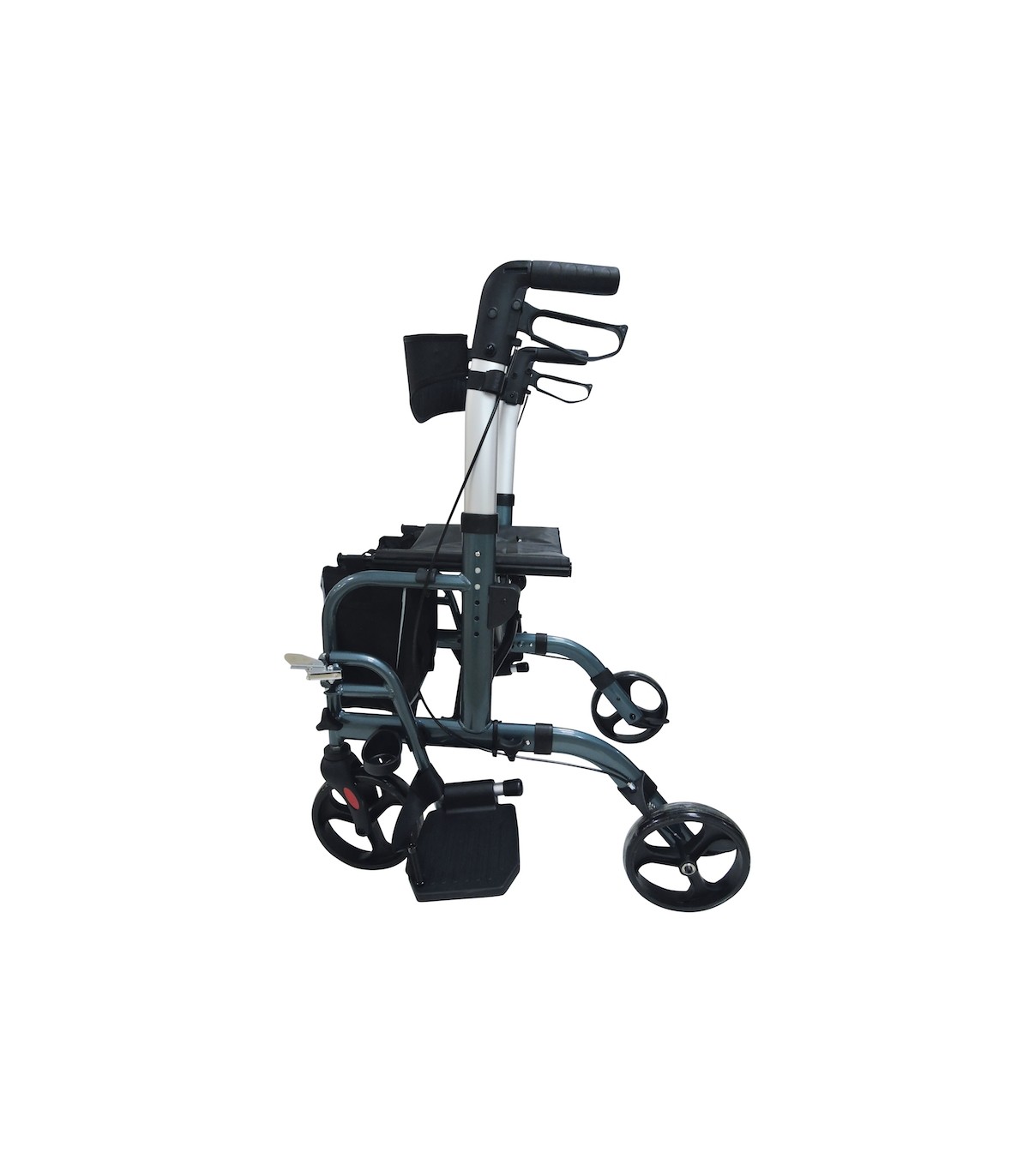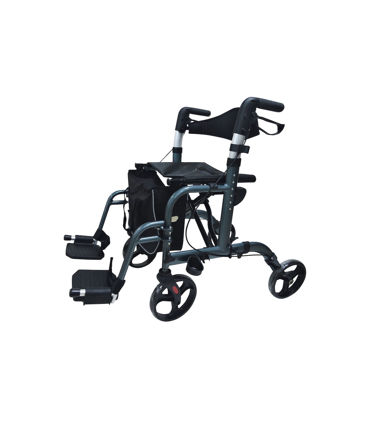 Il est rapidement et facilement convertible en fauteuil roulant, pour permettre à une tierce personne de pousser le patient. Pour cela, il suffit d'ajouter les repose-pieds et d'inverser le dossier pour le transformer en fauteuil de transfert.