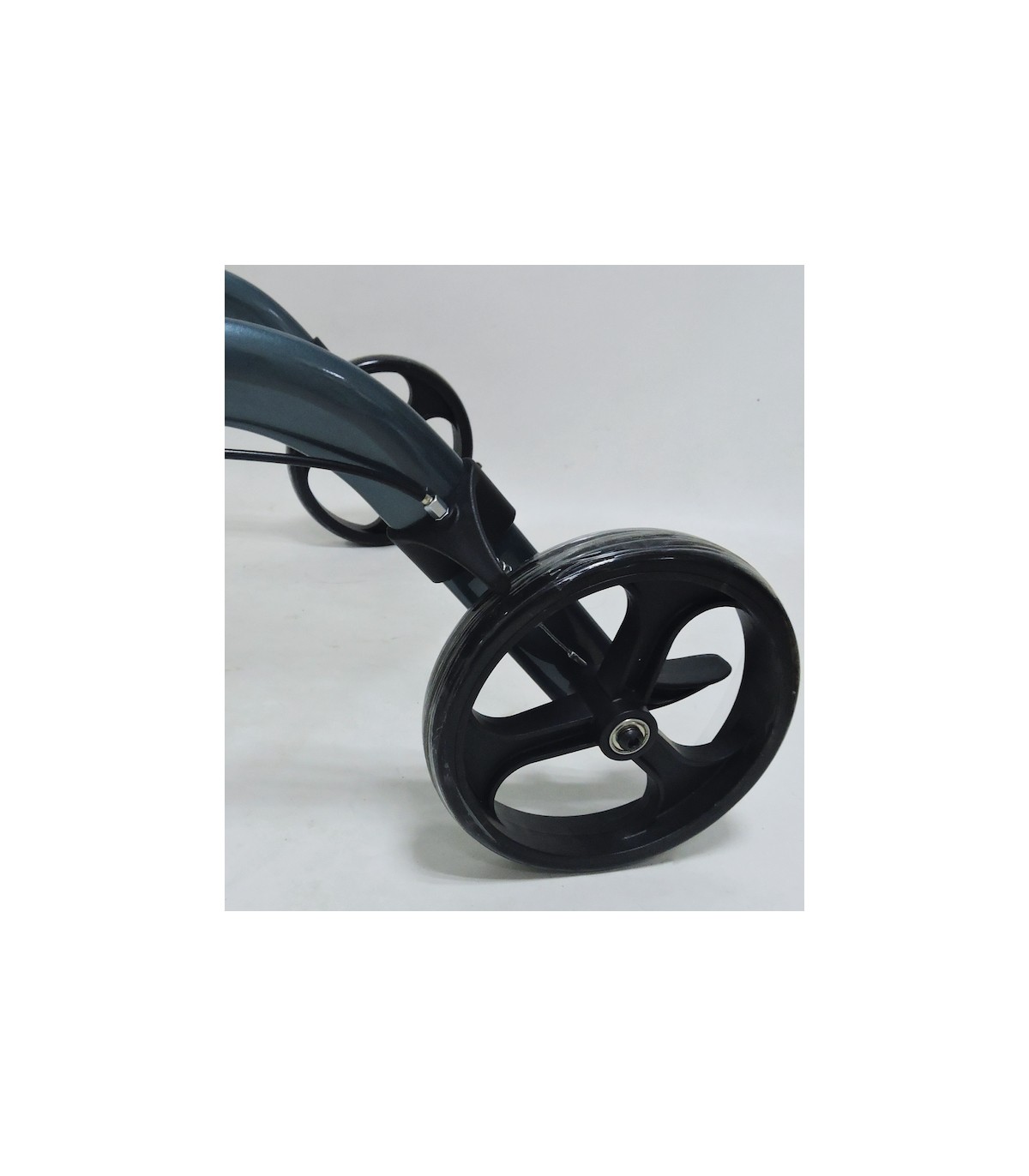 Pour apporter davantage de confort à l'utilisateur durant les promenades, ce déambulateur est équipé de 4 roues larges de 20 cm de diamètre.