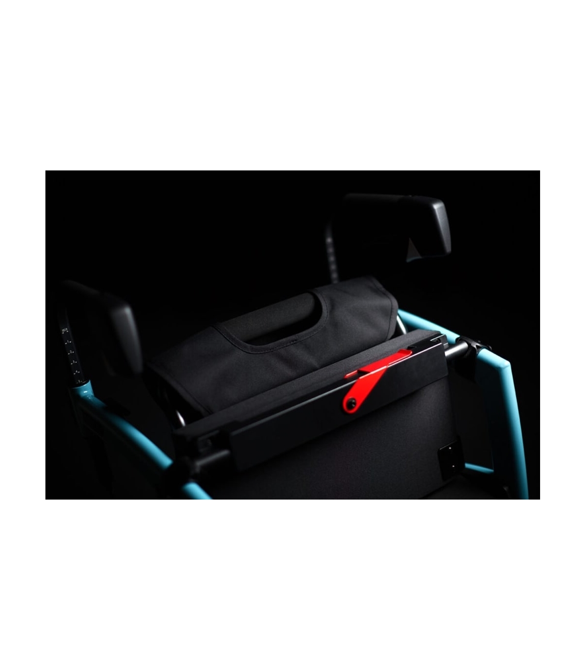 - Le porte kit permet de placer le kit dossier du fauteuil sur le siège durant la marche. Ceci donne plus de place pour les jambes.