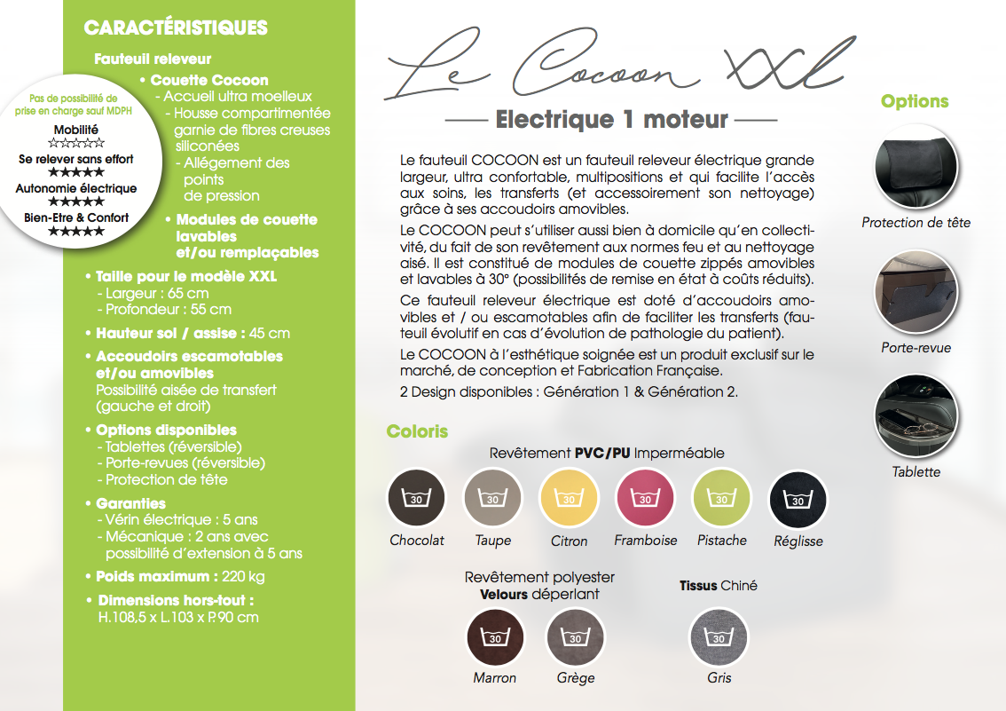- Le fauteuil releveur électrique Cocoon 2 moteurs 1ère génération