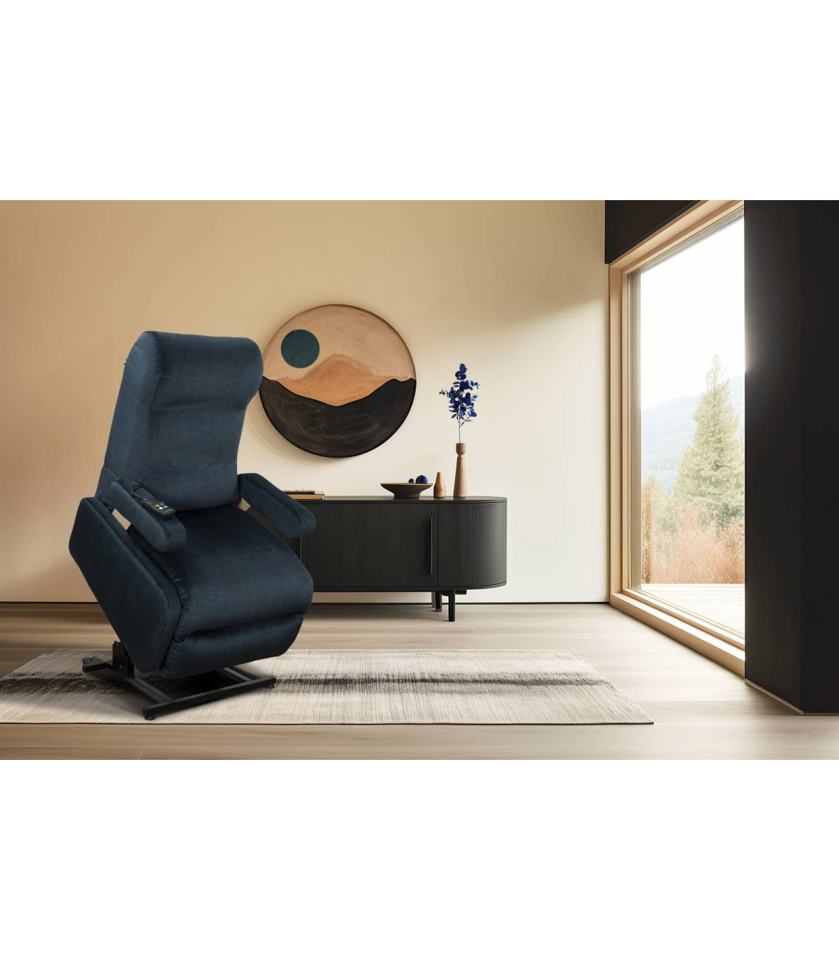 Le véritable atout du fauteuil relax électrique Althea’Up, c’est son système de relevage motorisé. En toute autonomie, vous pouvez changer de position sans effort, que ce soit pour vous asseoir, vous redresser ou vous allonger. Le mécanisme électrique, discret mais puissant, vous accompagne en douceur à chaque mouvement. Les positions disponibles (assise classique, position TV, position relax ou releveur) se contrôlent via des boutons accessibles, avec ports USB A et C intégrés pour garder vos appareils à portée de main. C’est un choix idéal pour préserver votre mobilité tout en restant chez soi dans un environnement confortable.