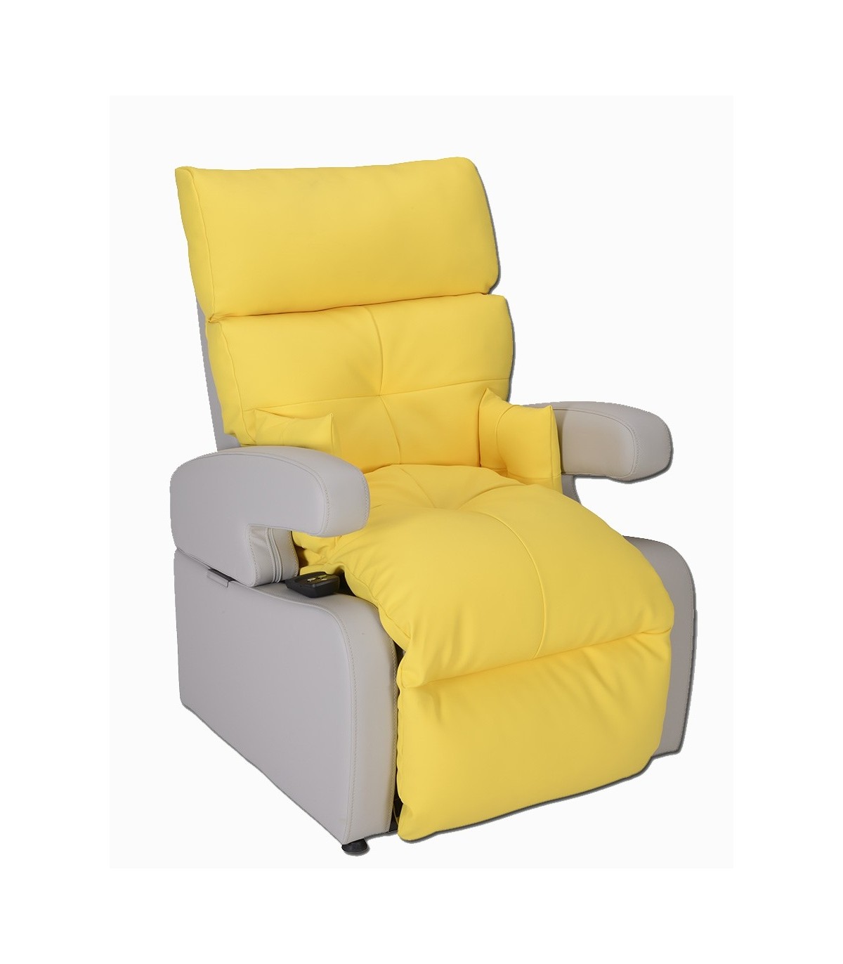 Sa télécommande peut être positionnée sur l'accoudoir à gauche ou à droite selon la préférence du patient.
