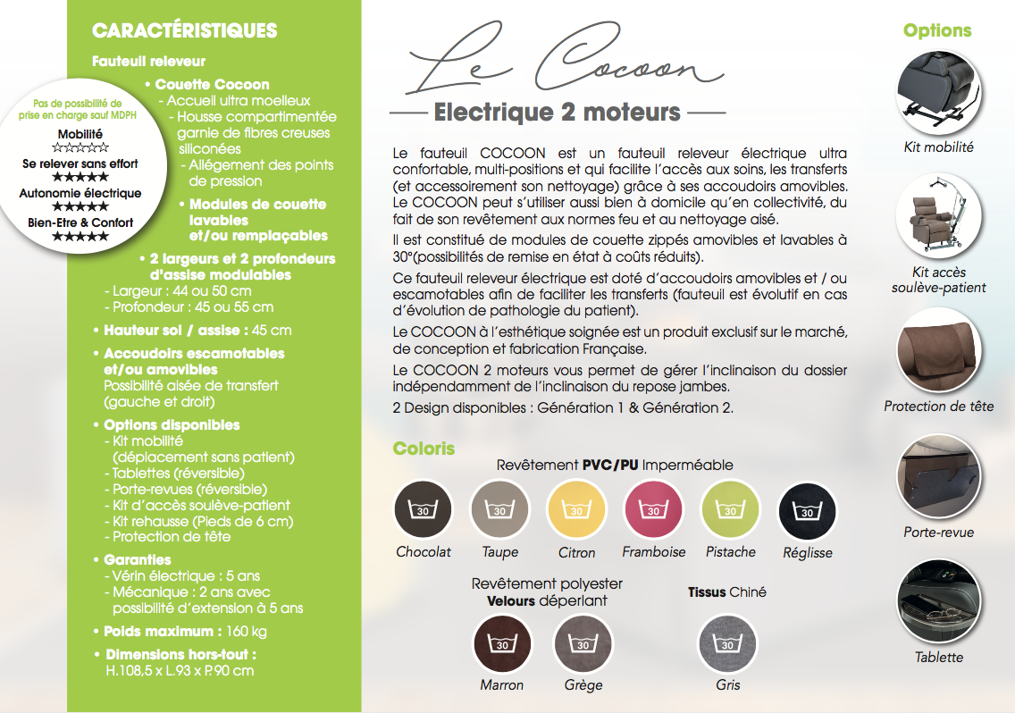 - Le fauteuil releveur médical Cocoon 2 moteurs 1ère génération