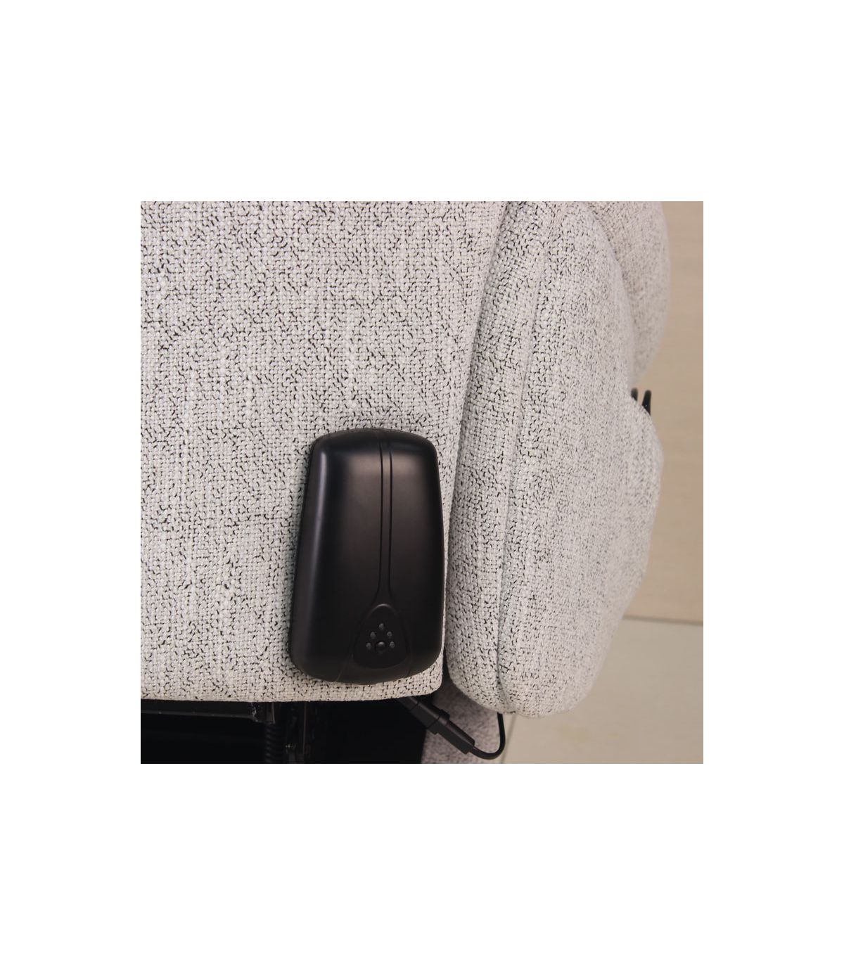 Le fauteuil releveur 3 moteurs Nest est équipé d'une pochette latérale pour permettre à l'utilisateur de ranger la télécommande.