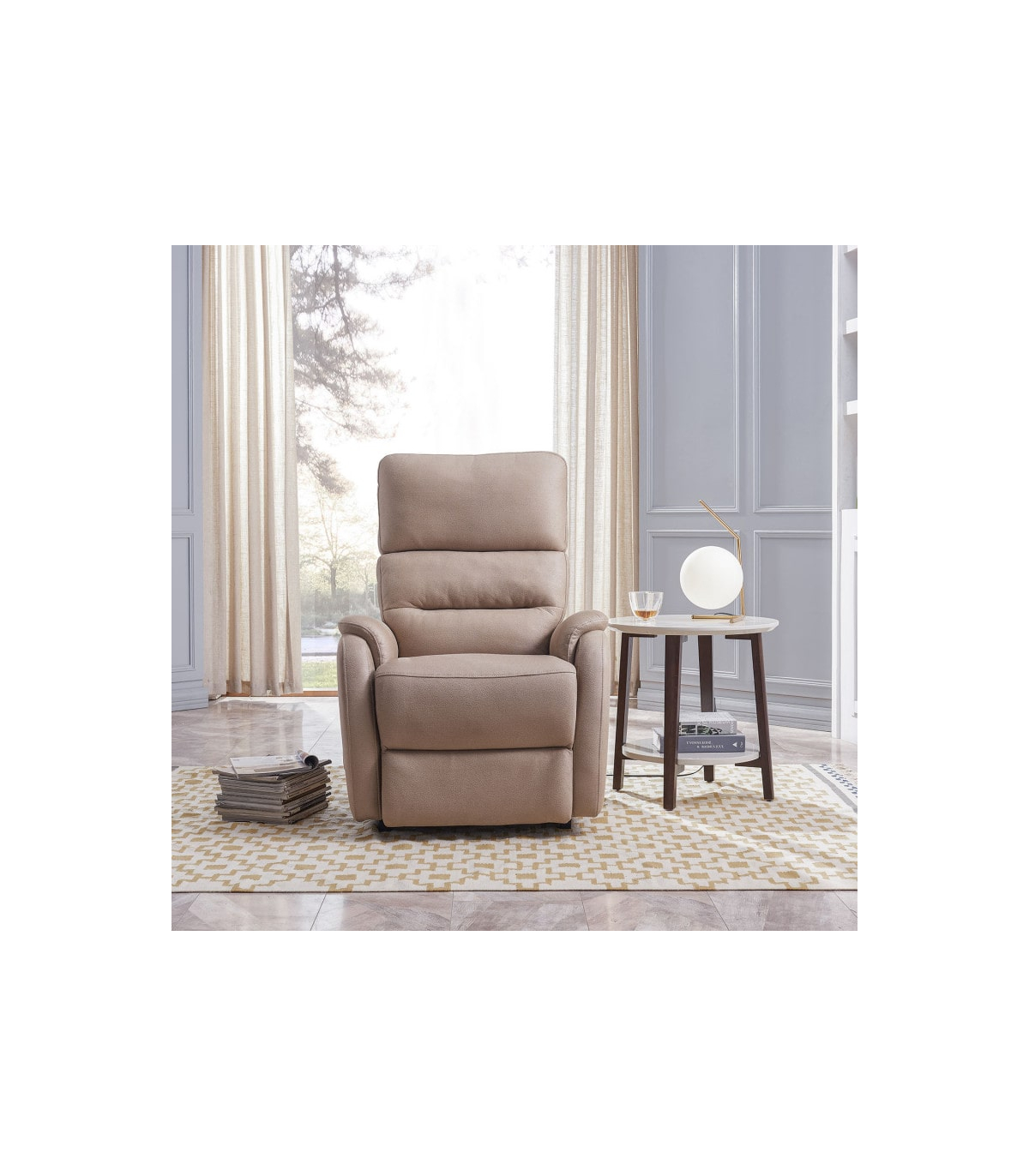 Que vous le placiez dans un coin, au centre de la pièce ou ailleurs, ce fauteuil de relaxation s'harmonise facilement avec votre intérieur grâce à ses teintes sobres, beige ou gris. Son design élégant et minimaliste permet au Lazare de s’adapter naturellement à tous les styles de salon.