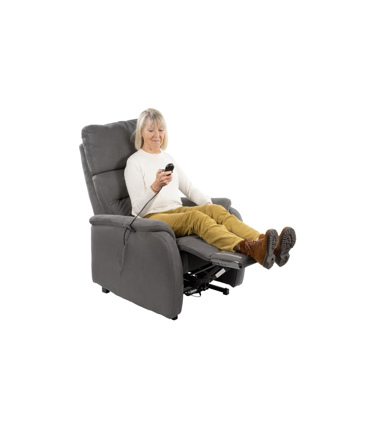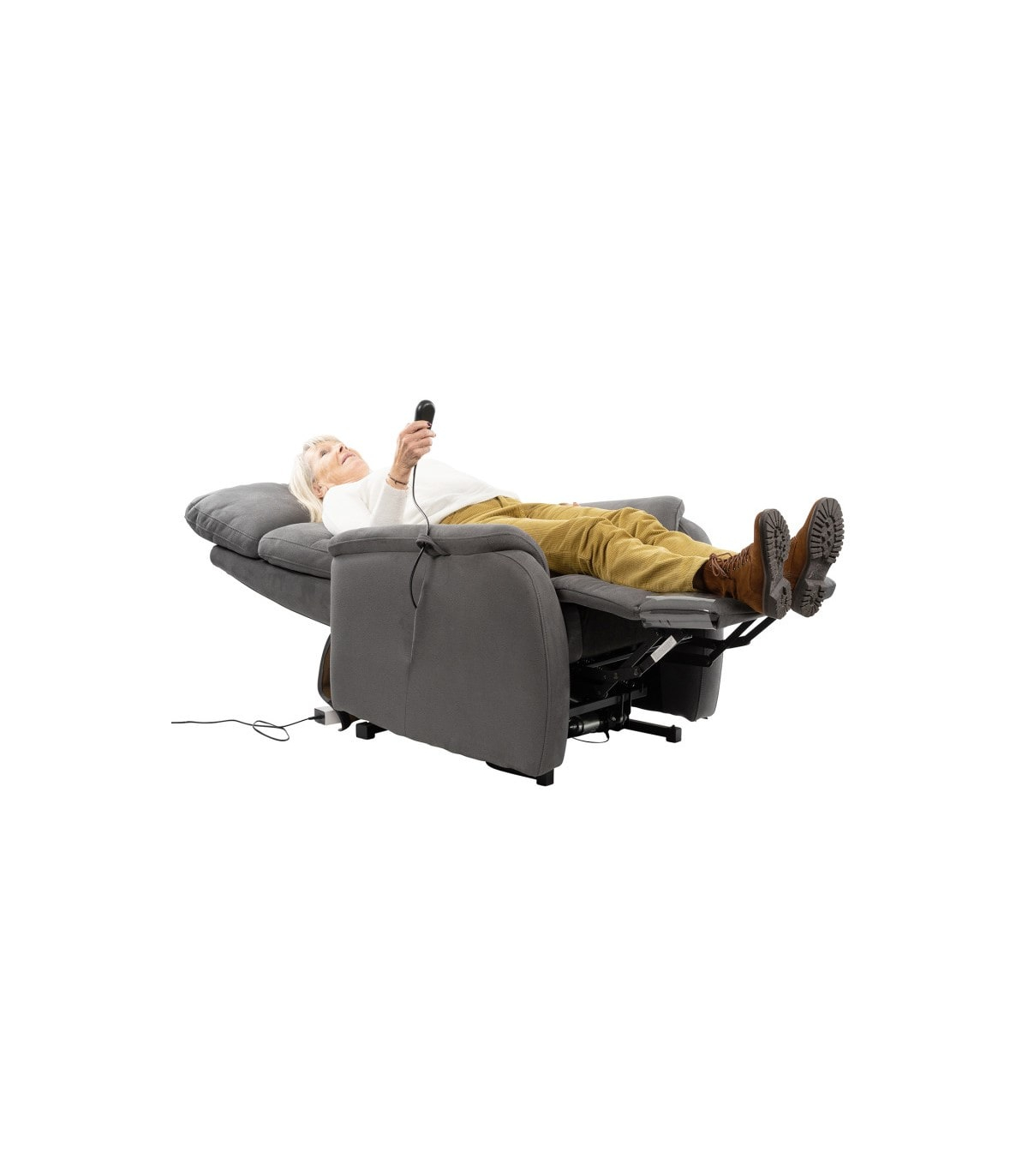Équipé de 4 moteurs indépendants, le fauteuil releveur électrique Lazare offre la possibilité d’ajuster séparément le dossier, le repose-jambes, l’appui-tête et le soutien lombaire pour un confort entièrement personnalisé.