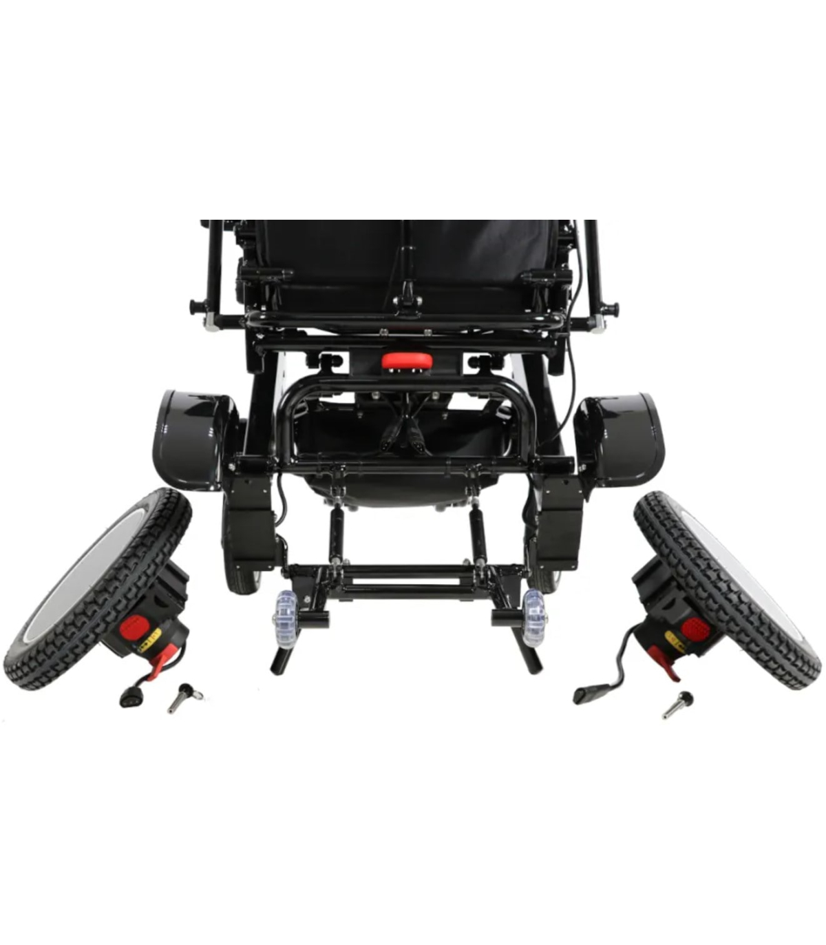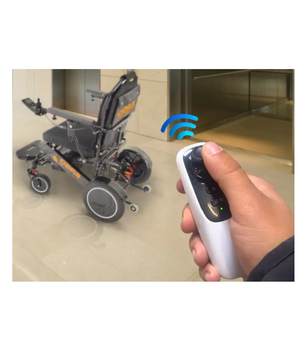 Contrôlez facilement votre fauteuil roulant électrique à distance grâce à la télécommande sans fil.