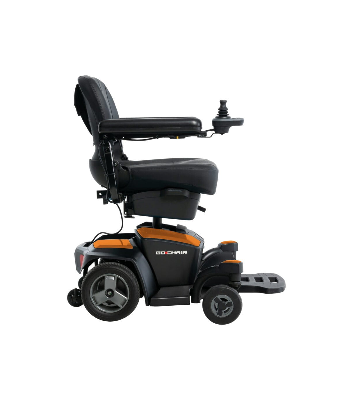 La chaise roulante handicapée électrique Go Chair est équipée de deux moteurs avec propulsion arrière et d’un système de freinage électronique régénératif, assurant une conduite stable et sécurisée.