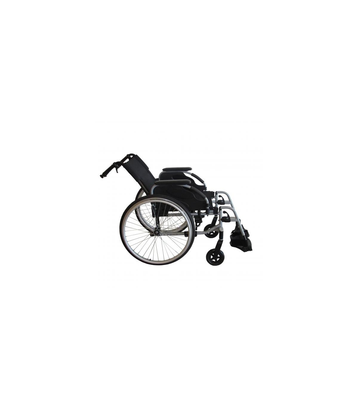 Les accoudoirs sont relevables, facilitant les transferts, tandis que les repose-jambes sont réglables en longueur (33 à 46 cm) pour s’adapter à la position de l’utilisateur.
